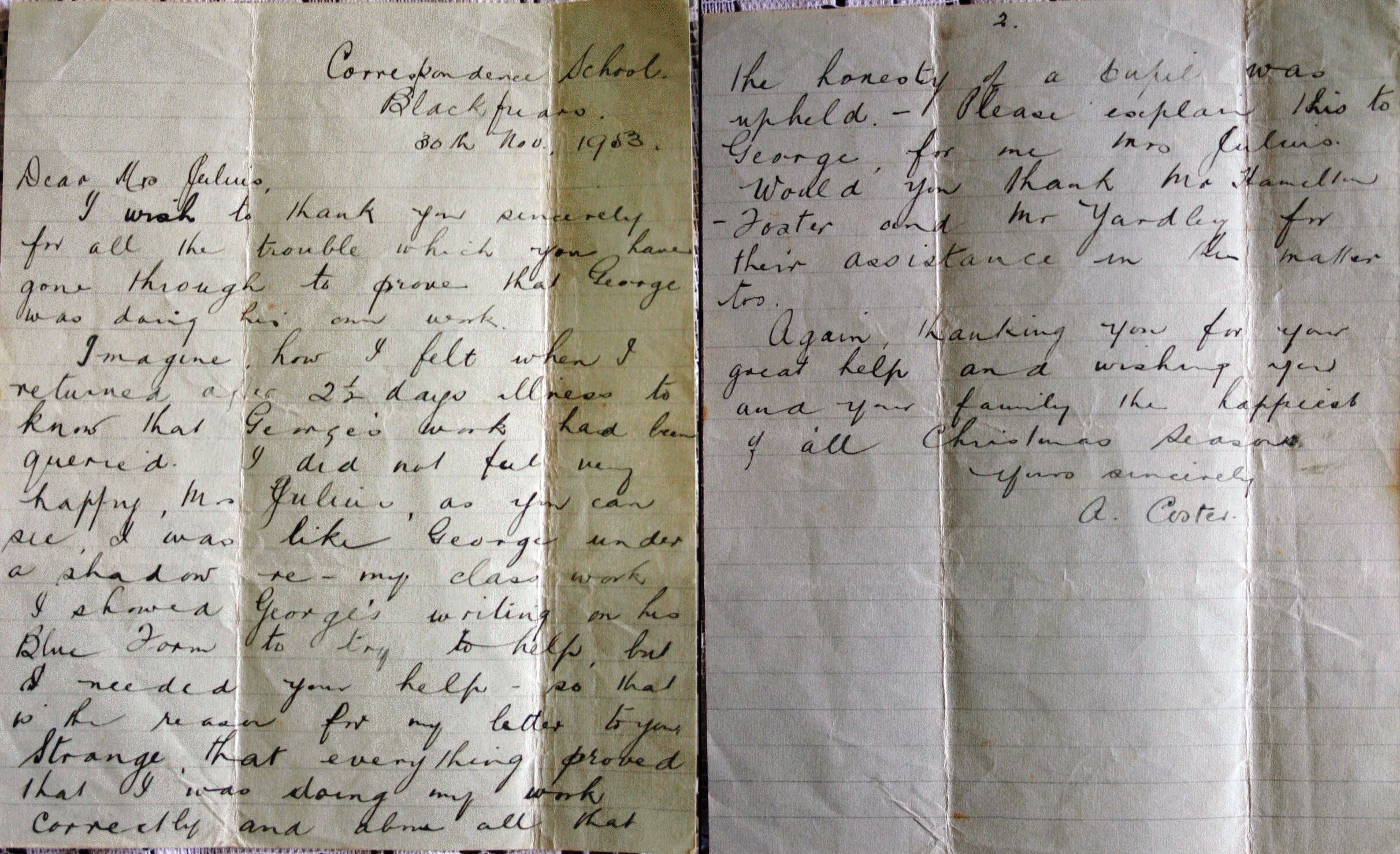 I should feel greatly obliged, if you could relieve my mind by letting me know what has happened to my son, or if it is not the business of your department to notify casualties, will you be so very kind as to pass this letter on to the right quarter that they may communicate with me as soon as possible.