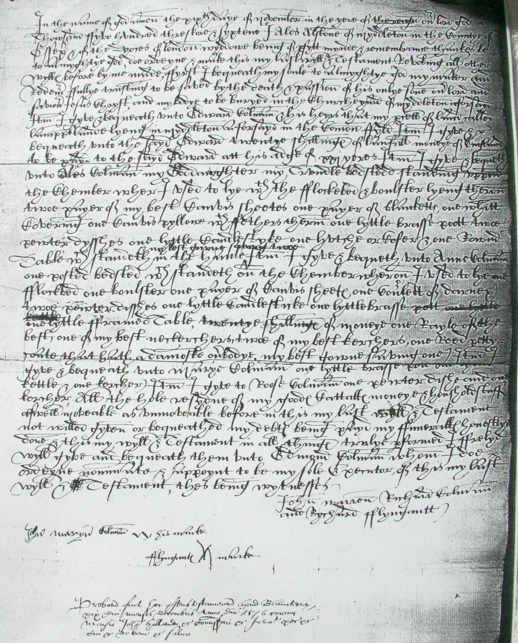 1. Alice Alston: Will, 1576. To be transcribed.