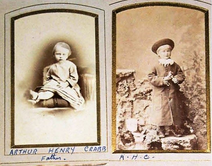 3. Arthur Henry Ayres Crabb: As a young person. Arthur married Ethel Lucy Lockwood Teed HEAVER [12297] [MRIN: 4118], daughter of Rev Thomas Teed TEED-HEAVER [12351] and Mary Ann Lockwood MAYDWELL [12352], on 16 May 1900 in Wymondham Abbey Church NFK. (Ethel Lucy Lockwood Teed HEAVER [12297] was baptised on 28 Sep 1878 in Marshfield GLS and died on 26 Dec 1964 in Brighton SSX.) |