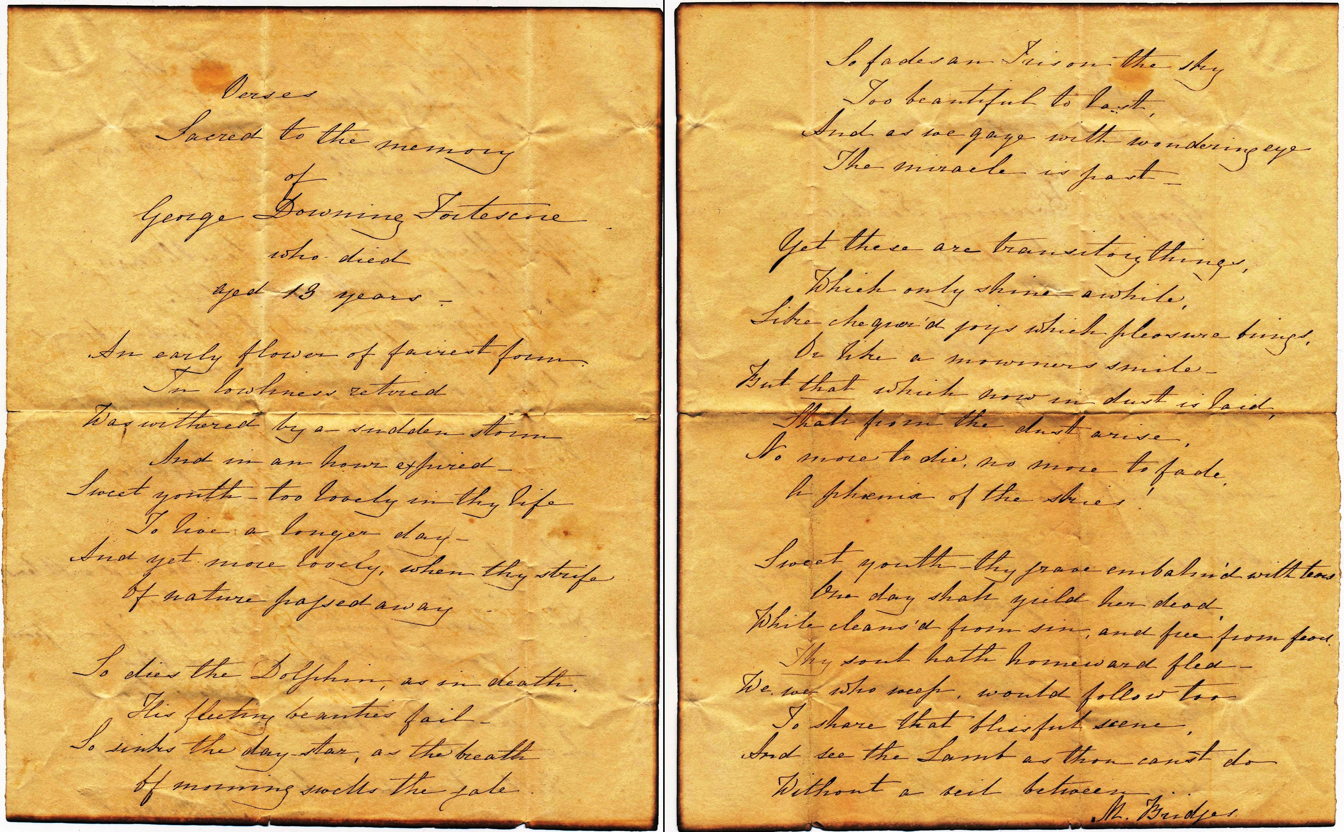 Verses Sacred to the Memory of George Downing Fortescue Who died Aged 13 years.