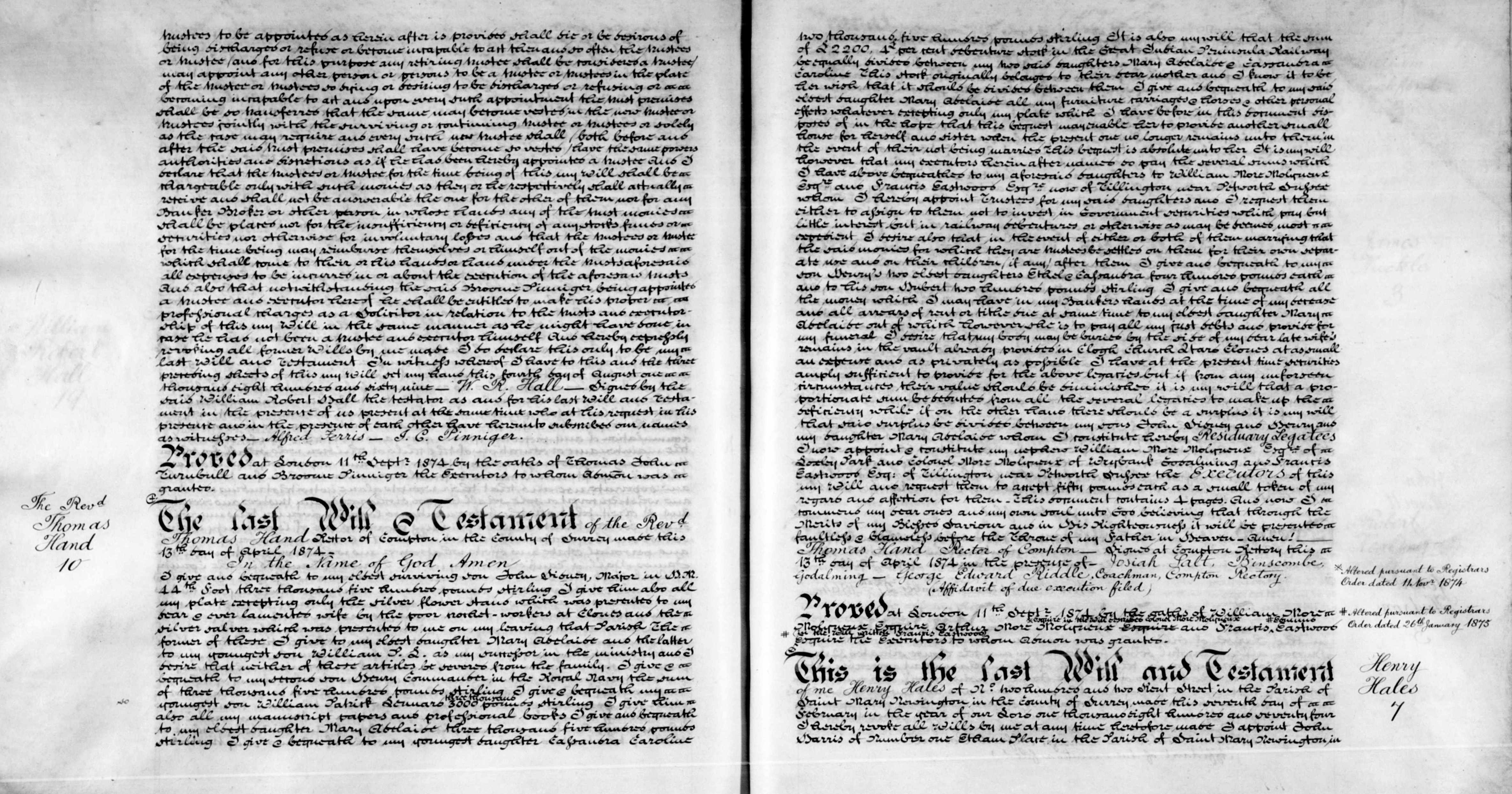 4. Thomas Hand: Will, 13 Apr 1874. To be transcribed