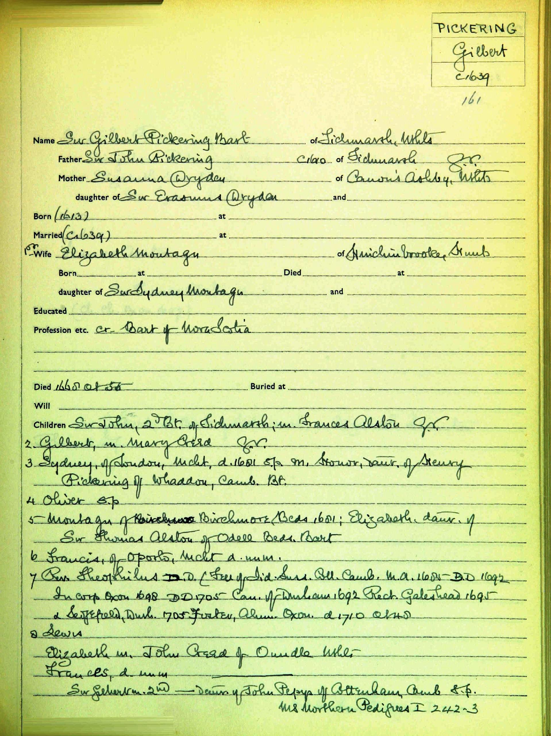 Sir Gilbert PICKERING Bt of Nova Scotia [18009] (Abt 1613-1668) |