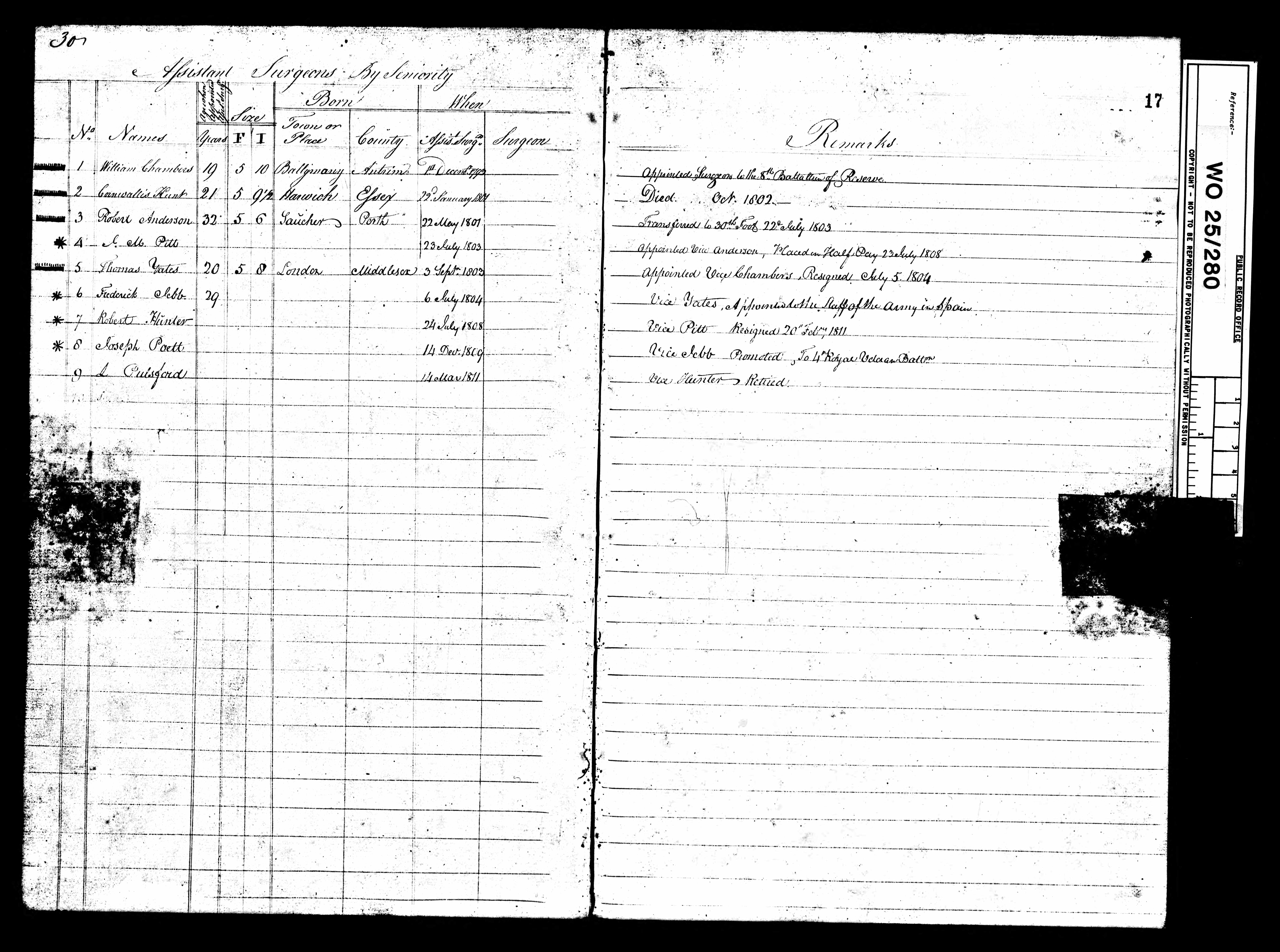 Cornwallis Hunt Age: 21 Size 5ft 9½ins Birth Date: abt 1780 Birth Place: Harwich, Essex Military Date: 22 Jan 1801 Unit: 18th Dragoon Guards