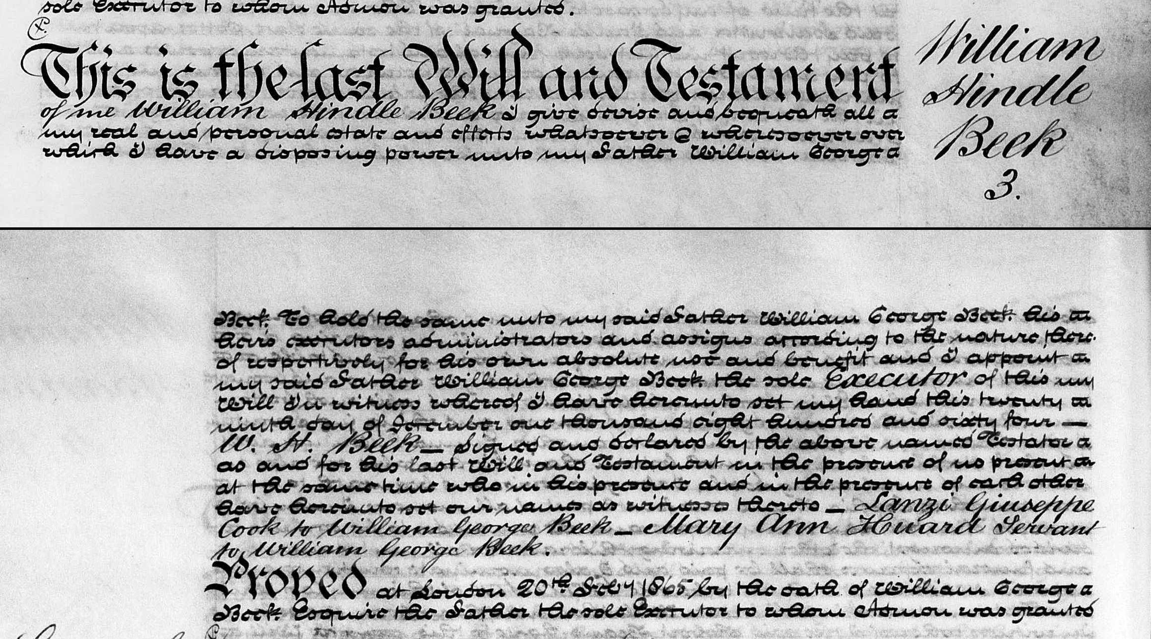 1. William Hindle Beek: Will, 1864. William leaves his entire Estate to his Father.