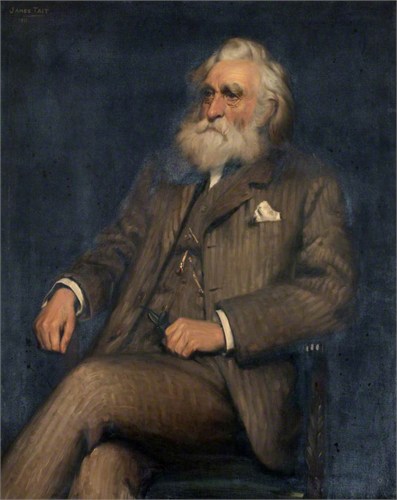 George Wilson of Kilmeny, Hawick, was born on 7th January 1815 and died on 23rd December 1898. He was a Senior Partner of Wilson & Glenny Ltd and was elected the first Provost of Hawick in 1861. He was also President of the Liberal Association of Hawick and Justice of the Peace for the County of Roxburgh. He was appointed Captain of the 5th Roxburgh Rifle Volunteers in 1861. https://artuk.org/discover/artworks/george-wilson-of-kilmeny-18151898-209010