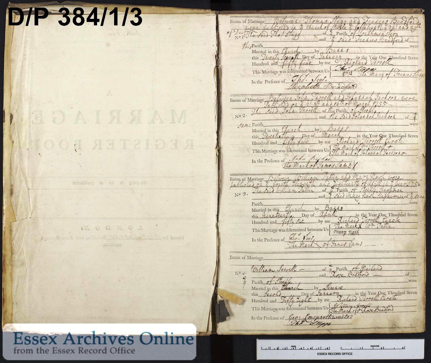 William married Rosamund BRADFORD of Mundon [19297] [MRIN: 6941] on 2 Jan 1758 in Steeple Essex. (Rosamund BRADFORD of Mundon [19297] was baptised on 1 Jul 1737 in Steeple Essex, died in 1803 in St Lawrence Essex and was buried on 25 Mar 1803 in Mayland Essex.)