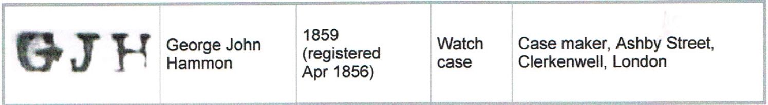1. Census: England, 30 Mar 1851, 4 Skinner St Clerkenwell MDX. George is recorded as a son unmarried aged 19 a watch case maker born in Clerkenwell MDX 2. Census: England, 8 Apr 1861, Earlsdon Rd Coventry. George is recorded as head of house married aged 29 a watch manufacturer employing 3 men & 1 boy born St James Clerkenwell MDX George married Louisa [20193] [MRIN: 7257]. (Louisa [20193] was born about 1833 in St James Clerkenwell.) |