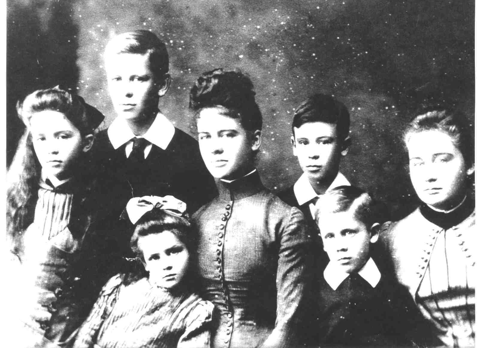 1. Sarah and her family. Standing L to R Muriel, Arthur, Maud, Herbert, Edith. Sitting L to R Ethel, Percy.