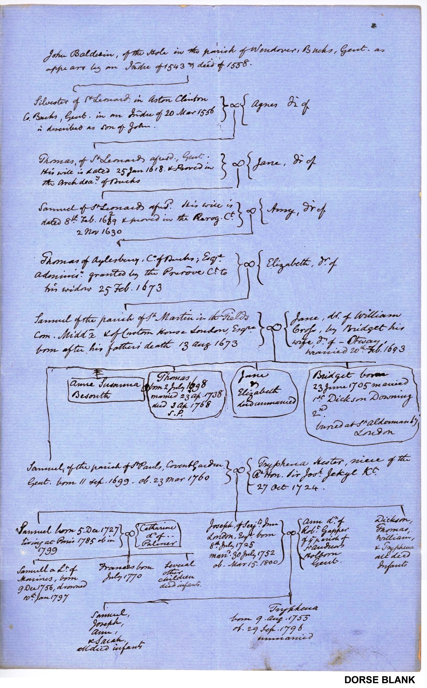 Samuel married Tryphena Hester JEKYL [21957] [MRIN: 7894], daughter of Rt Hon Sir Joseph JEKYL Bart [21958] and Unknown, on 27 Oct 1724. |
