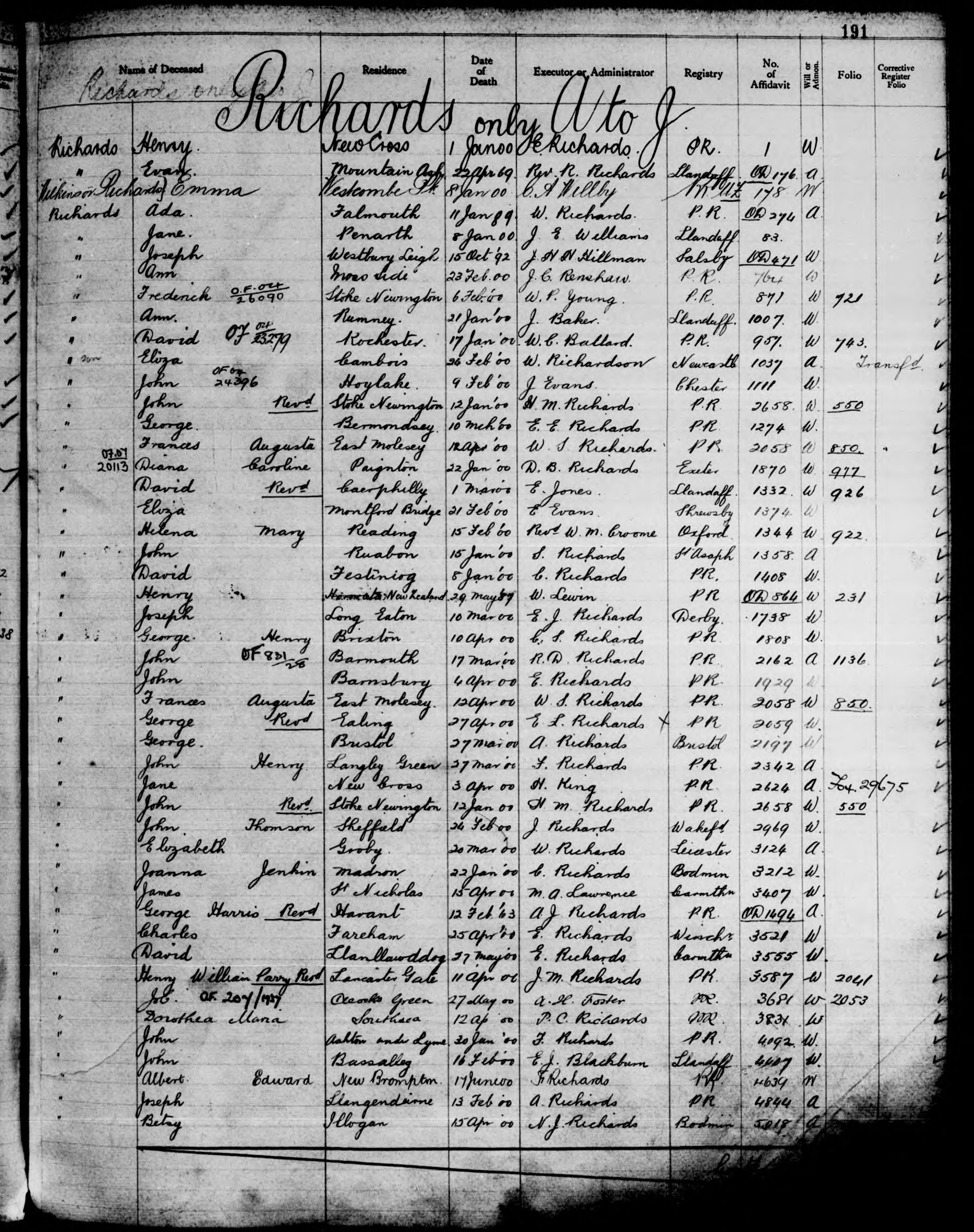 Death Duty Register 1863 contains a Rev George Harris Richards of Havant died 12 Feb 1863 Executor A J Richards.