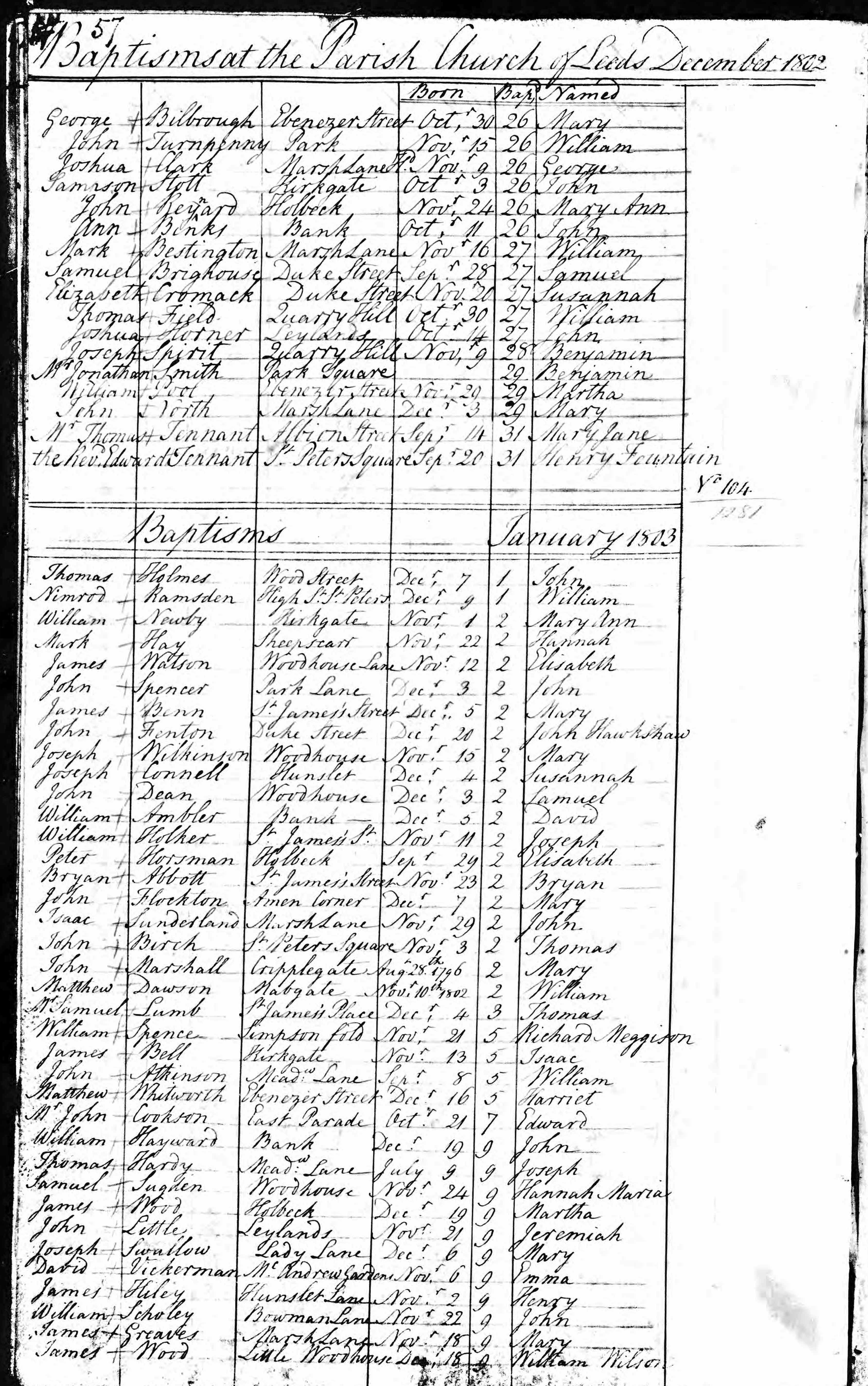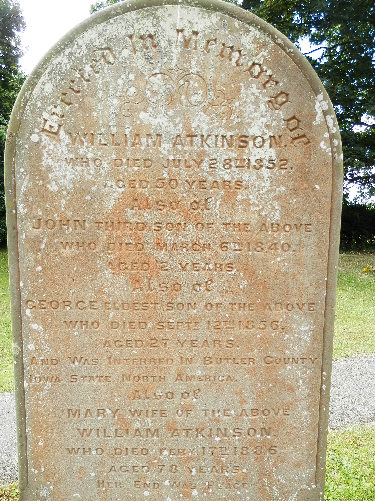![]() 1. William Atkinson: Baptism, 15 Sep 1802. ![]() 2. William Atkinson: Baptism, 5 Jan 1803. 3. Census: England, 30 Mar 1851, Danby Wiske YKS. William is recorded as head of house married aged 48 a schoolmaster born Leeds YKS ![]() William married Mary Ann MORTON [23310] [MRIN: 8366] 1st Qtr 1839. (Mary Ann MORTON [23310] was born on 30 Aug 1806 in Romanby YKS, baptised on 12 Sep 1806 in St Peter Leeds YKS and died on 7 Feb 1886 in Danby Wiske YKS.) |