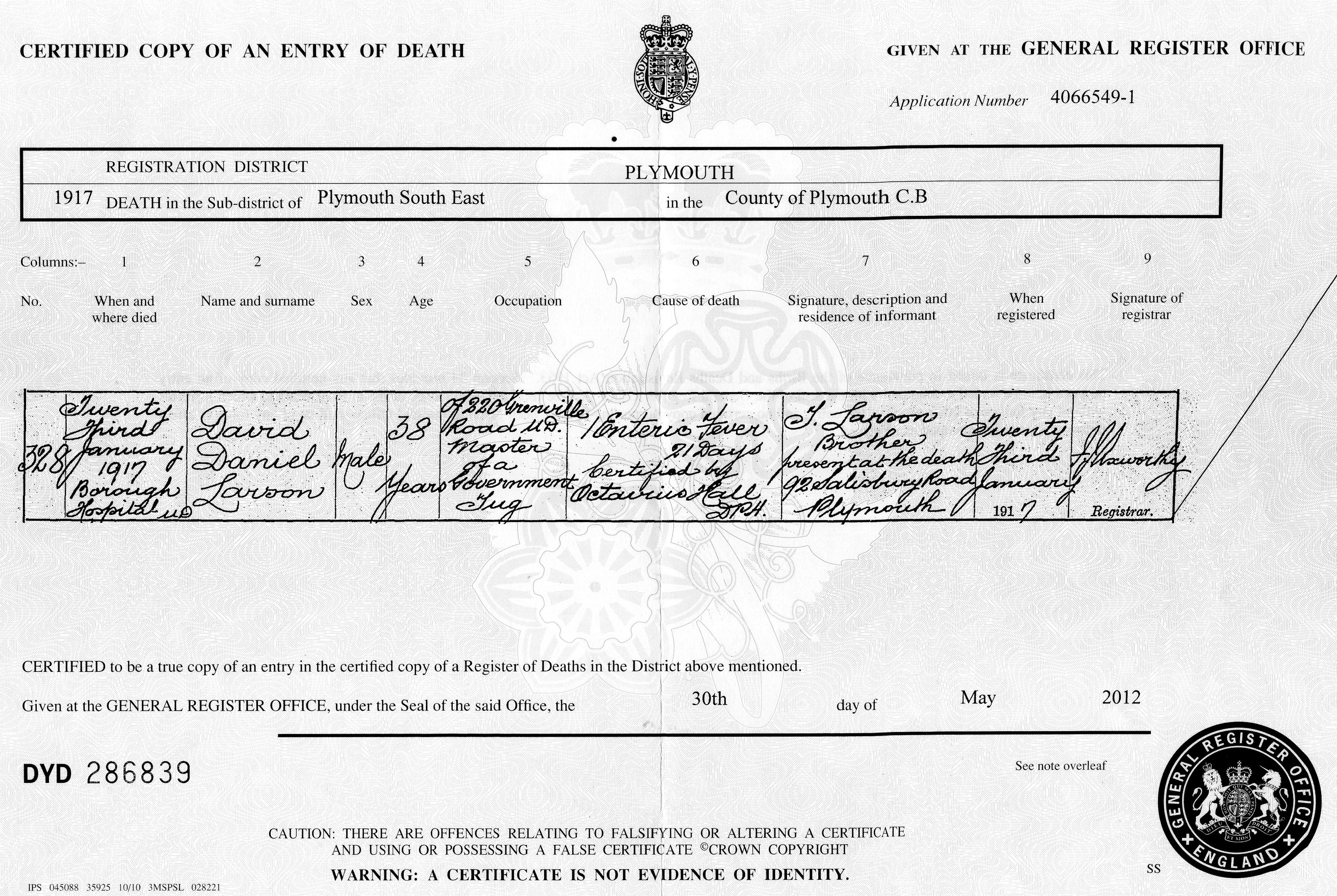 David Daniel LARSON [23322] (Abt 1878-1917) |