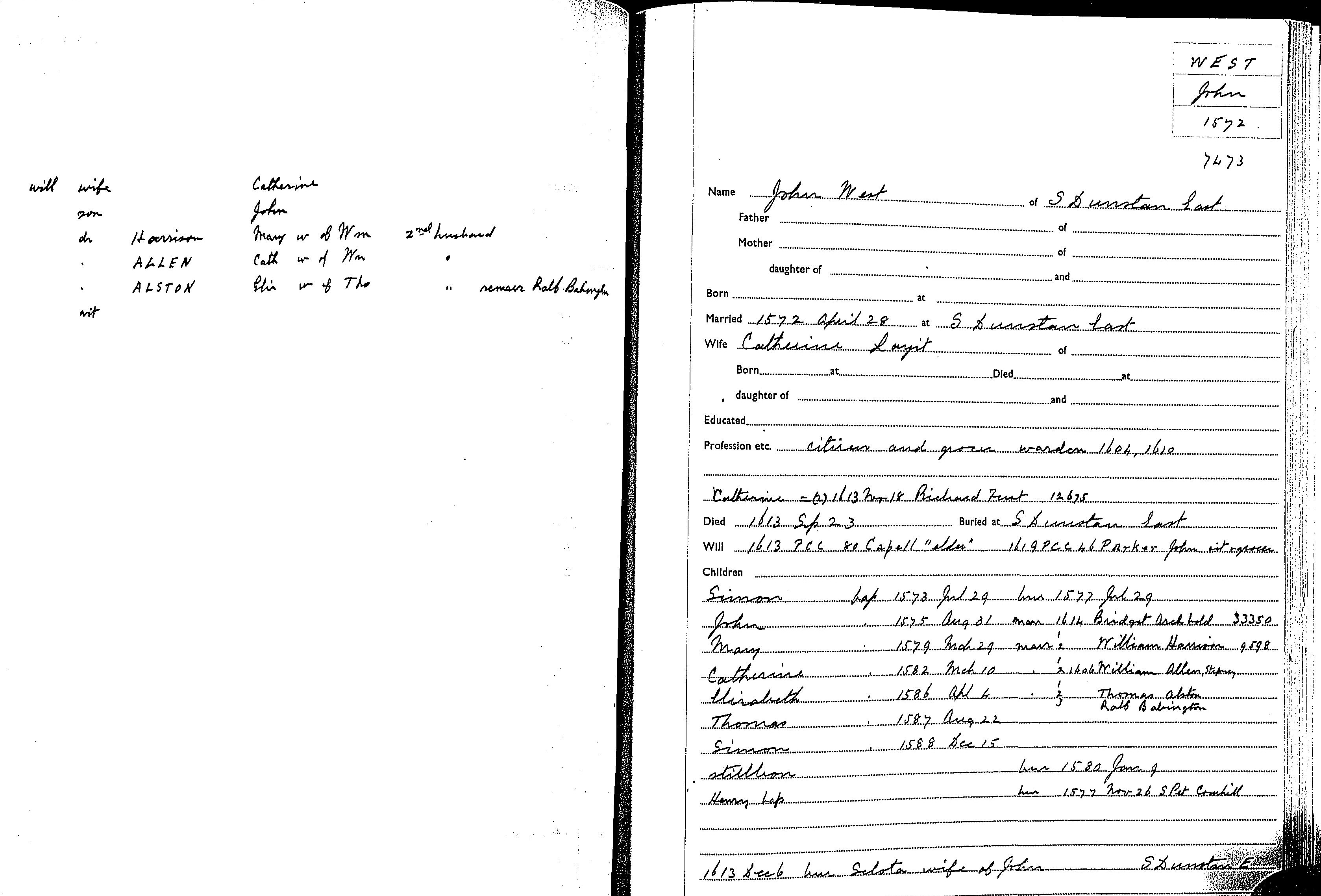 John married Catherine LAYIT [24921] [MRIN: 8983] on 28 Apr 1572 in St Dunstan East LND. |