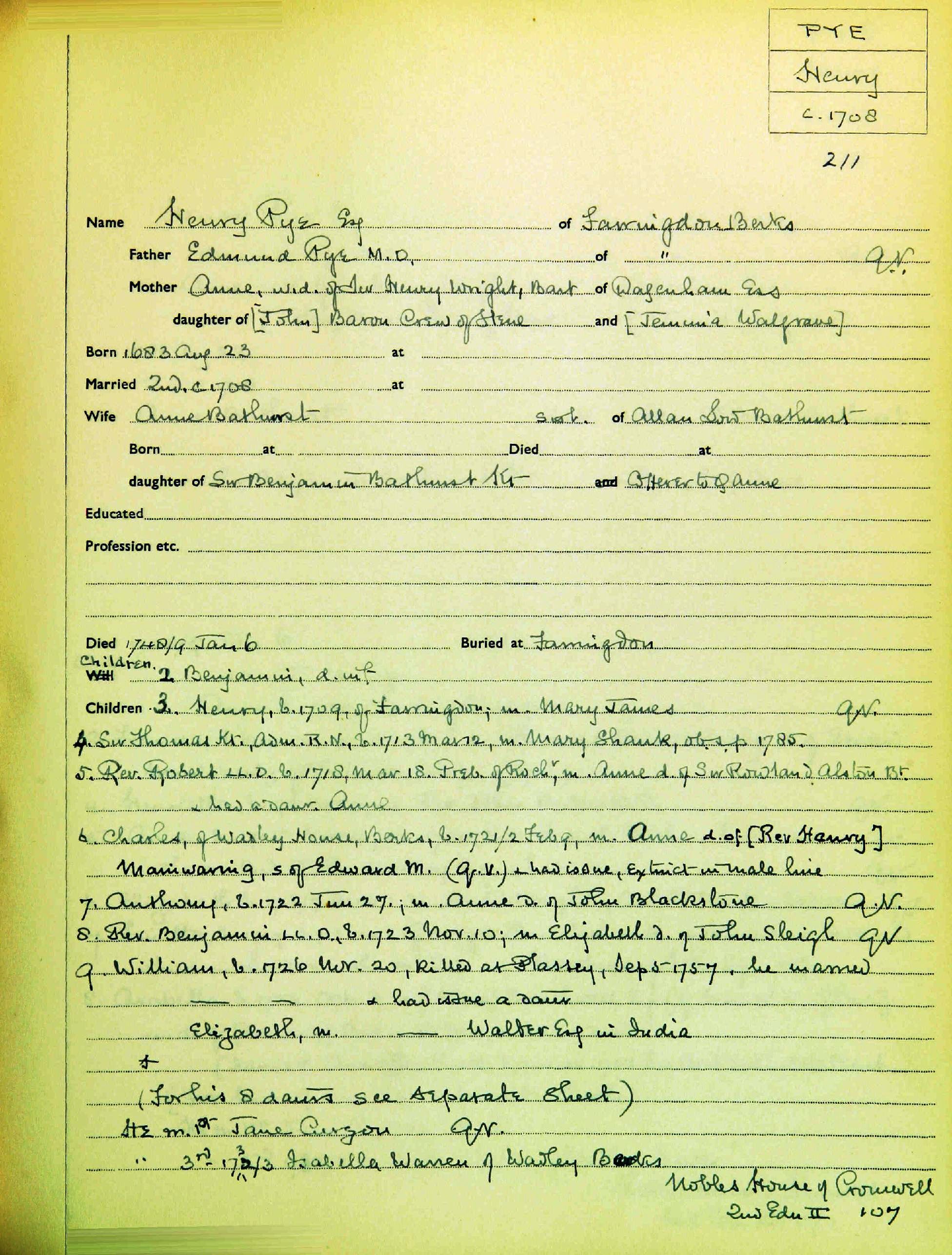 Henry PYE of Farringdon BKM [24957] (1683-1749) |