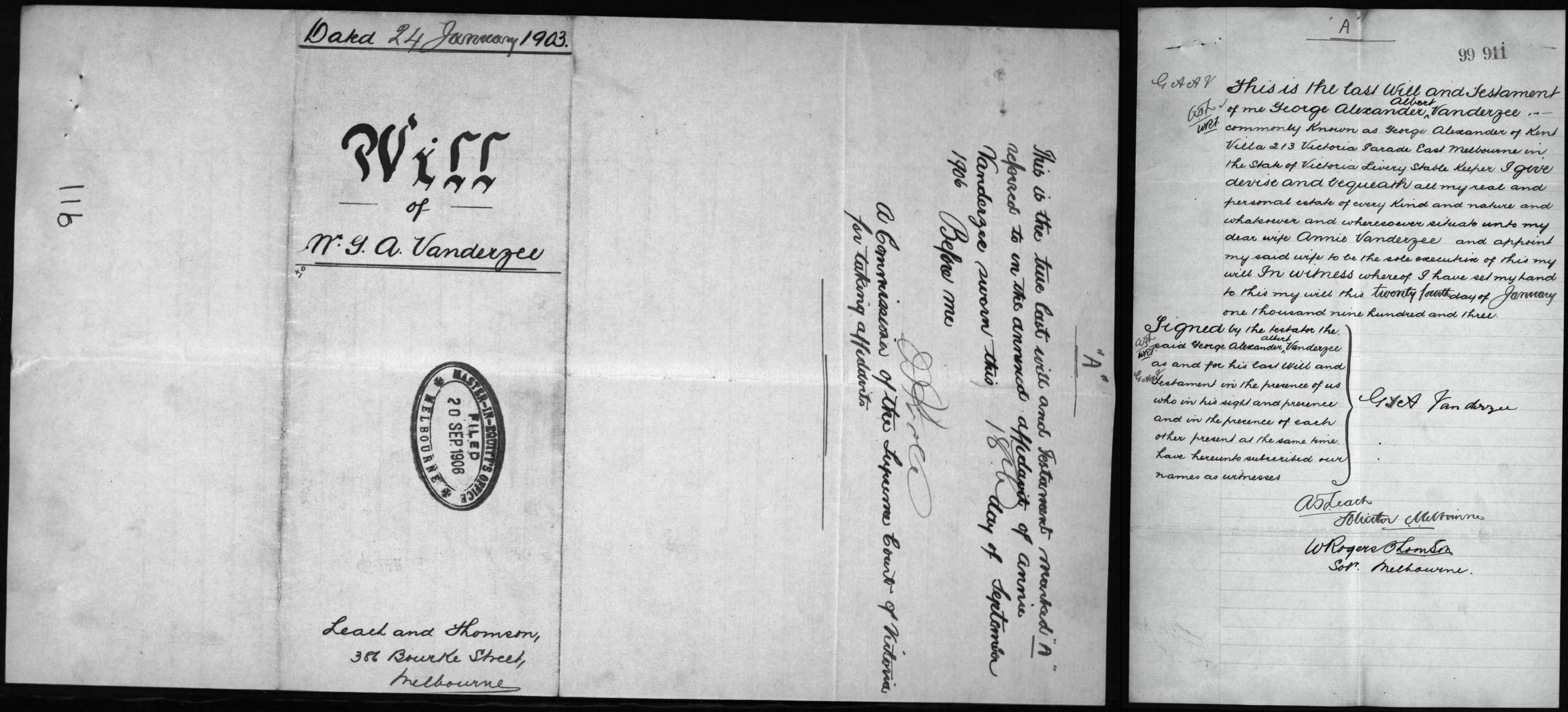 2. George Alexander Albert Vanderzee: Will, 24 Jan 1903 Probate 1 Oct 1906.