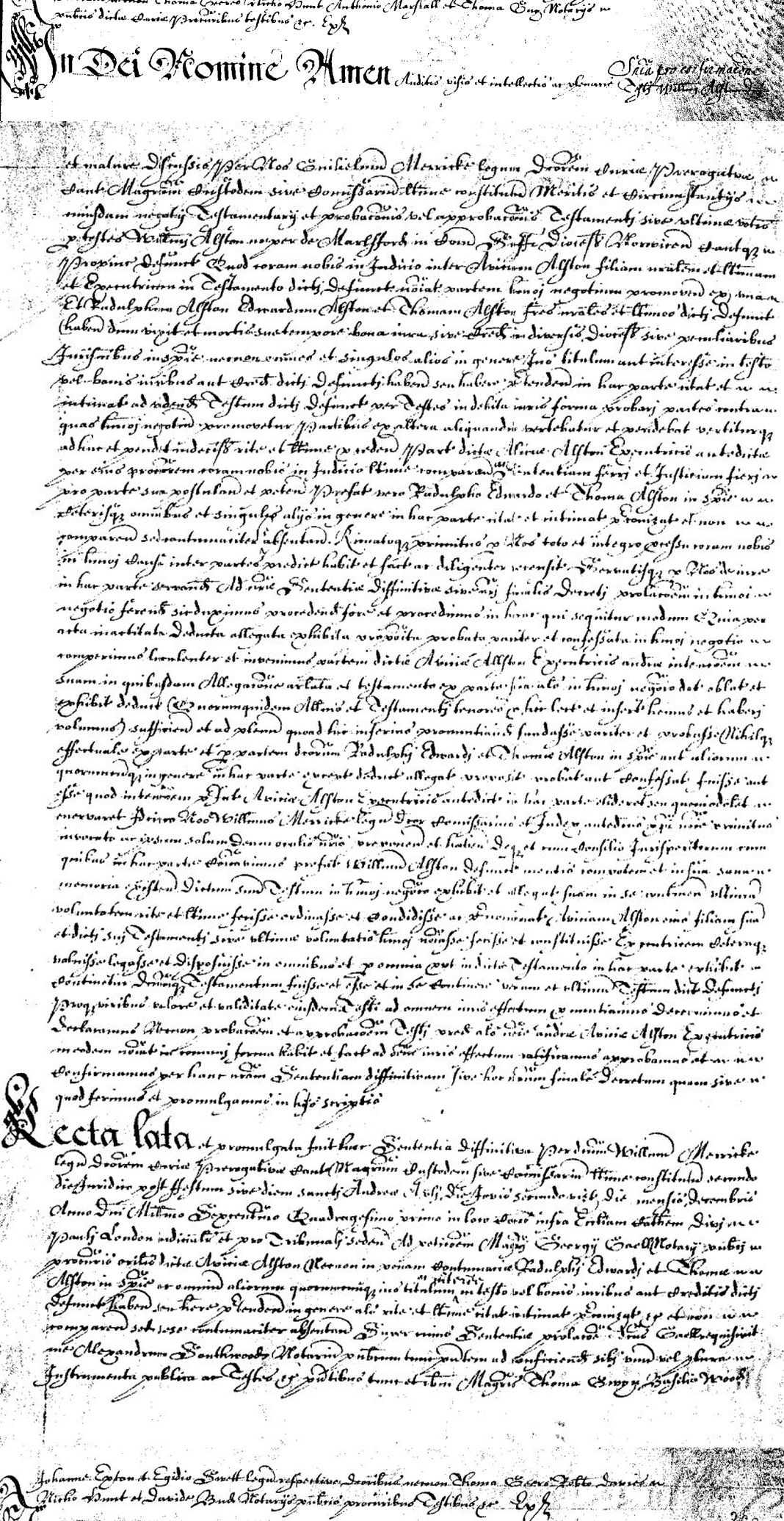 4. William Alston: Sentence to Will, 2 Dec 1641, Marlesford SFK. PROB 11/187/472 Description:Sentence1 of William Alston of Marlesford, Suffolk Date:02 December 1641.