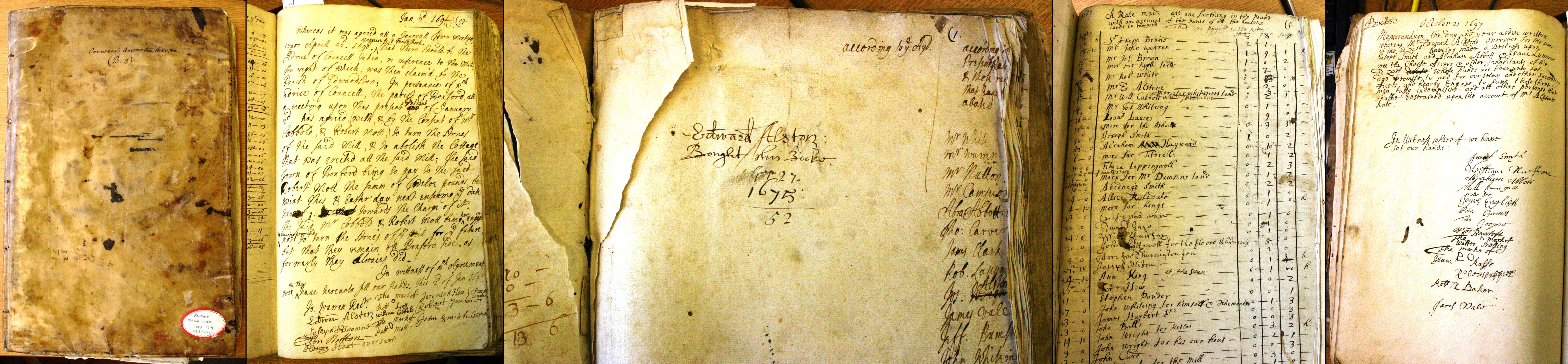 1. Edward Alston of Boxford. Book on left was bought for the Parish by an Edward Alston in 1675, there are at least two Edwards it may refer to.