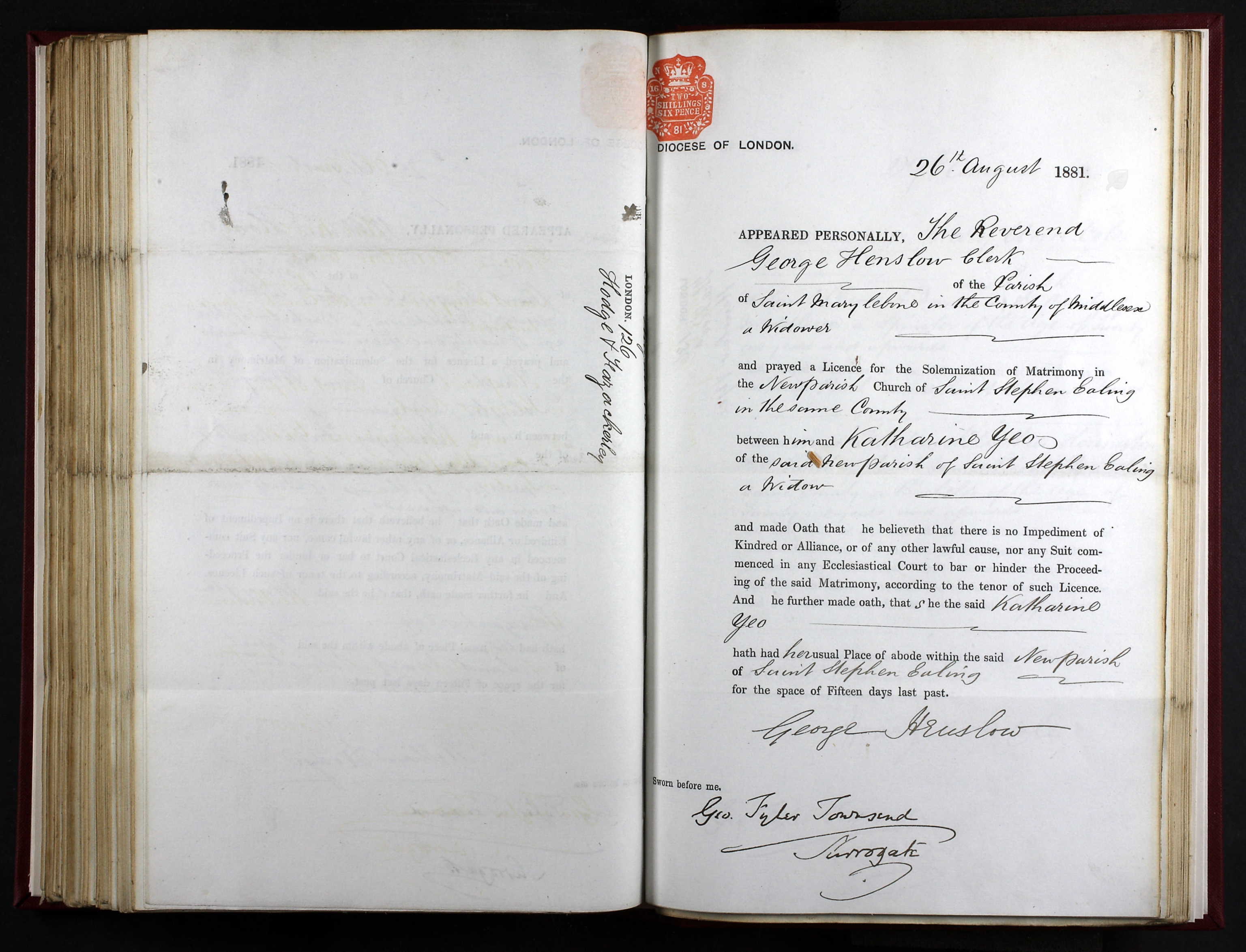 George married Katharine YEO [32133] [MRIN: 11430] in 1881. (Katharine YEO [32133] was born in 1846.) George next married Georgiana Brook BAILEY [26577] [MRIN: 11425], daughter of Rev John Hopkins BAILEY [26109] and Caroline Mary DAVIDSON [26110], on 31 Dec 1873 in St Paul St Pancras Camden LND. (Georgiana Brook BAILEY [26577] was born about 1843 in Wickford ESS, baptised on 25 May 1843 in St Catherine Wickford ESS and died in 1876 in Kensington LND.) |