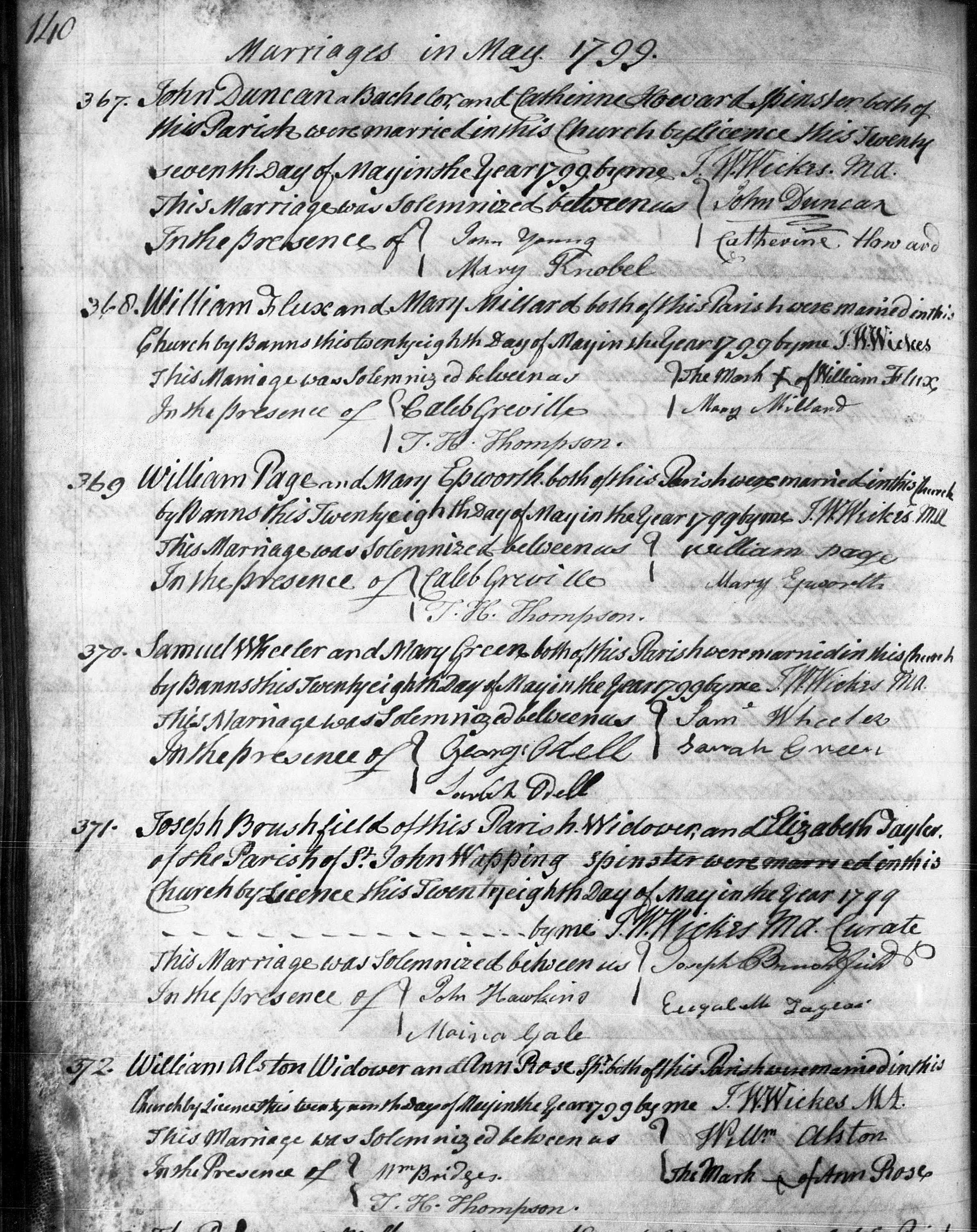 Ann married Sir William ALSTON 8th Bart of Lingfield [3277] [MRIN: 1114], son of Sir William ALSTON 7th Bart [3271] and Elizabeth WEARE (WEAIRE) of Oxted Surrey [3276], on 29 May 1799 in St George Hanover Sq. (Sir William ALSTON 8th Bart of Lingfield [3277] was born on 15 Nov 1745, died on 6 Mar 1819 in Lingfield SRY and was buried on 11 Mar 1819 in Lingfield Church SRY.) |