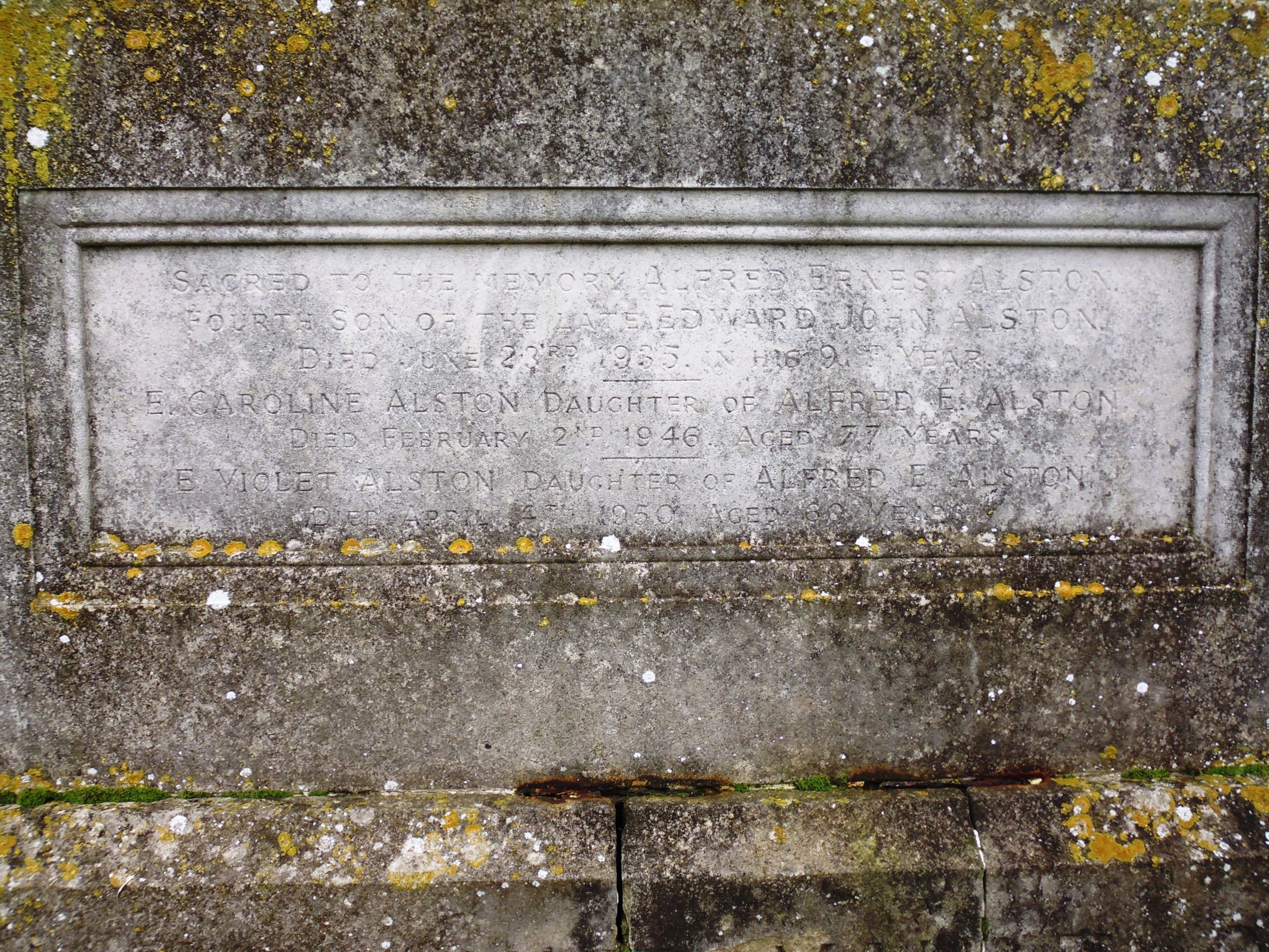 Ethel is remembered on the Alston Tomb in Great Bromley Churchyard, Essex: "Sacred to the memory . . . . . E Violet Alston daughter of Alfred E Alston died April 4th 1950 aged 60 years" Ref: Photographed and recorded by Mike Burn 2014.