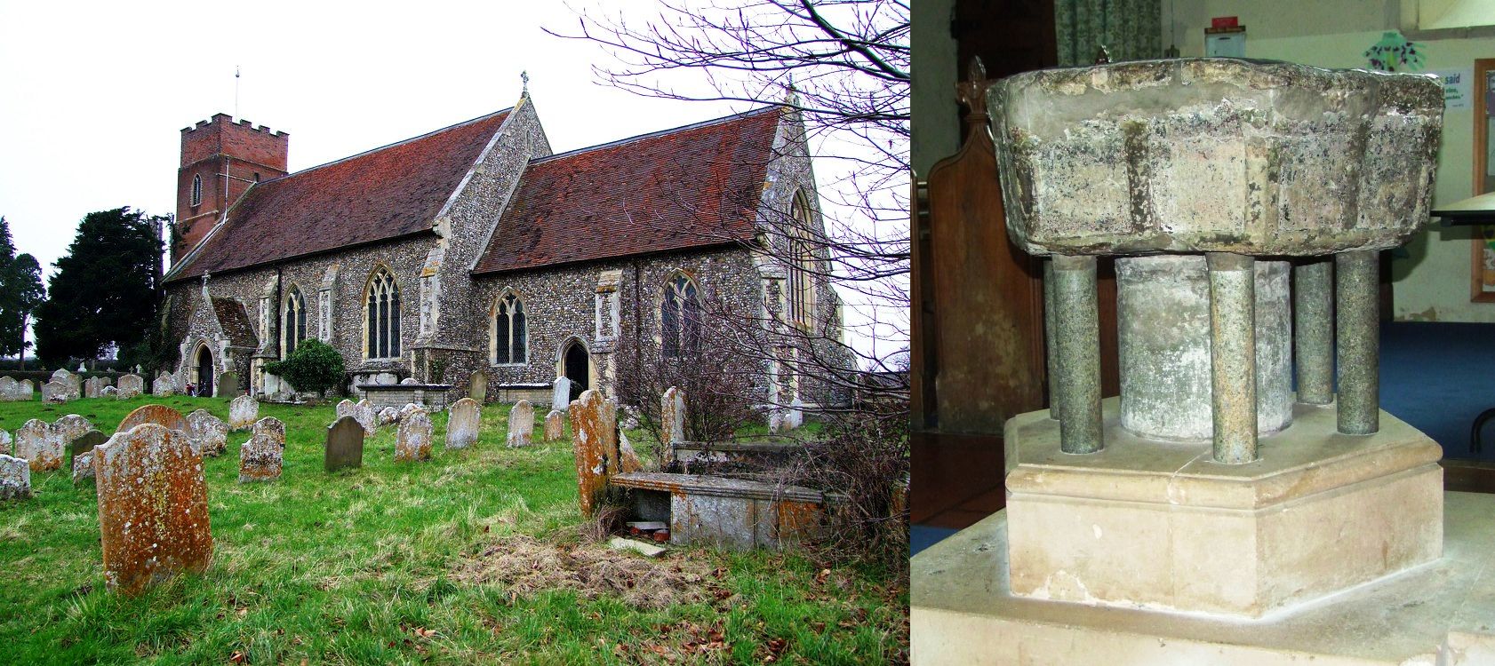 1. George Fortescue Alston: Place of George's baptism, 1 Jan 1831, Layham Church & Font. The family were living in Layham in 1831 and George Fortescue was baptised at St Andrew, in the 13th C Purbeck Marble hexagonal font.