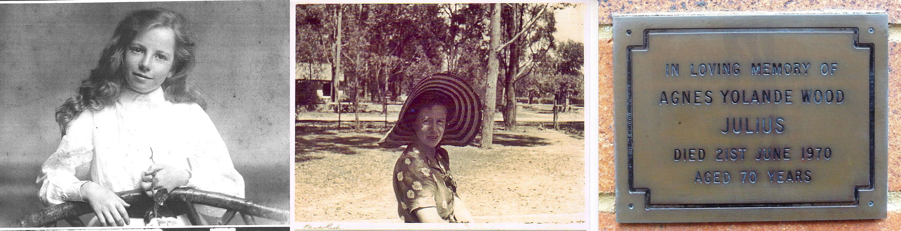 1. Agnes Yolande Wood Wansey. Agnes married Awdry Francis JULIUS [580] [MRIN: 170], son of Dr Sir George Alfred JULIUS [577] and Eva Drongsia Odierna O'CONNOR [578], on 25 May 1926 in St Marks Sydney. (Awdry Francis JULIUS [580] was born on 13 Nov 1900 in Freemantle W.A., baptised on 7 Dec 1900 in Freemantle W.A, died on 2 Nov 1989 in Wahroonga NSW AUS and was buried on 6 Nov 1989 in Northern Suburbs Crematorium Sydney.) |