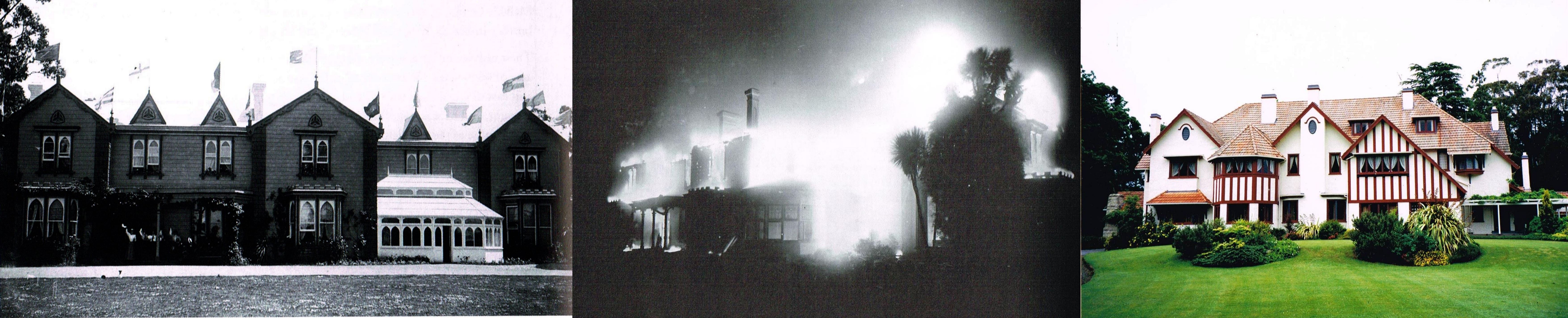 1. Holme Station Homestead: Lost to fire, 1910, Pareora St Canterbury. The Fire at Holme Station. The Fight with the Flames. Unrehearsed Deeds of Daring. A Descriptive Account. "Never again" These were the solemn words of an old servant, who stood beside the ruins of the magnificent structure known as the Holme Station homestead, that has been the home of Mr Arthur S. Elworthy for many years, and the home of his father before him. "46 years come next month" said the old servant reflectively "and they'll never see it again". The old fellow's conversation was so extremely melancholy that the "Post" representative hastened to change the topic to one of a more agreeable nature. It was only on Thursday last, it appears, that Mr and Mrs Arthur Elworthy took their departure for Australia, leaving behind them there fairly large retinue of domestic servants and farm assistants, and their four children - Edward, aged eight years; Rachel, aged seven years; Bettie, aged five years, and Johnnie aged three years - in charge of the governess, Miss Ford. Mr P A Elworthy, of Gordon's Valley, returned last Saturday from a visit to Australia, while Mr Herbert Elworthy, is at present touring the South Sea Islands. It was Mr and Mrs Arthur Elworthy's intention to have gone on an extensive motorcar tour in Australia, but the fates were not kind to them, and immediately on Mr Elworthy stepping off the boat at Sydney he was handed the following startling communication: "Homestead totally destroyed by fire this morning". The consternation of the recipient may be better imagined than described, and was intimated in a brief table home, "Returning by next boat". Viewed yesterday, the huge mass of burning and smoking debris revealed merely the fact that a fire had taken place. There was little to indicate that a magnificent old building, teeming with historical associations for one of the oldest families in South Canterbury, and containing some L3000 worth of the finest furniture and curios to be found anywhere in the Dominion, was represented in those smouldering ashes. Yet such was the fact. The fine old home was estimated to be worth between L4000 and L5000, and was insured for L3700, while the furniture was valued at something like L3000, and was insured for L2500. In a home of this description, however, as, in fact, in all homes more or less, there are articles of furniture whose commercial value for insurance purposes is but the merest trifle of the value that the owner places upon them. The curios, collected from all parts of the globe at infinite trouble and no little expense, were valued because of the associations that surrounded them, and the story of travel and adventure that each little article recalled; their commercial value was not a consideration, inasmuch as the owner was not prepared to sell them. Features of the House. The house, which was built of fine old seasoned timber, and plastered throughout, contained 26 rooms, in addition to a liberal provision of larders cupboards etc. The rear portion of the dwelling was erected by the late Mr Edward Elworthy in the year 1864, but it has had several additions made to it from time to time. The latest addition was the northern wing, containing a handsomely furnished billiard room. Among the 26 rooms were, of course, numerous bedrooms; also two nurseries (one downstairs and the other upstairs), a schoolroom, a sewing room, a morning room, a drawing room, dining room, dressing rooms, etc. Every apartment was furnished in a thoroughly complete and up-to-date manner, and contained every convenience that a modern gentleman could desire. The whole dwelling was lit by electricity, supplied from a special powerhouse situated about 30 yards to the west of the dwelling. In the rear portion of the structure were situated the kitchen, the scullery, the servants sitting room, and to the south of these rooms divided by a passage, were the cellar and the dairy. It was somewhere in this portion of the building, probably in the servants sitting room, that the fire originated. Credence is lent to this deduction by the fact that the fire was first noticed in this quarter, and it was certainly the most thoroughly burnt out section of the whole dwelling. The servants declare that they left a low burning fire in a perfectly safe condition, but it is a well-known fact that it is in these low burning, apparently safe fires that little coal gas explosions sometimes take place with the result that burning cinders are thrown out into the room, and disaster follows. There would seem to be still plenty of reason, in this modern era, for the use of the old-fashioned safety guard, that was supposed to perform the double duty of barring the outward progress of exploded cinders, and of swelling the dividends of the insurance companies. The Holme Station, it should be mentioned, is a magnificent estate of about 5000 acres of first-class land. The homestead faced to the east, and from the front one could obtain an uninterrupted view of the beautiful country that stretches in one great plain as far as the eye could reach. To the north west towers Mount Horrible; to the west the chain of hills, some distance behind which, lies the Timaru Borough's Pareora water dam. The homestead is well protected by tall plantations, while in the immediate vicinity of the destroyed dwelling are beautifully laid out grounds, containing flower beds, rose avenues, and beautiful English and colonial trees. To the west, and with its branches resting over the roof of the dwelling was an aged walnut tree which, to the homestead hands at least, has now a melancholy historical interest. It's huge blackened stem and charred branches speak eloquently of the part it played in the sorry conflagration. At 11 o'clock on Monday evening the maids and the governess retired to bed; the children had long since been wrapped in the arms of slumber. The homestead male hands, with the curious propensity of their sex, have not yet
