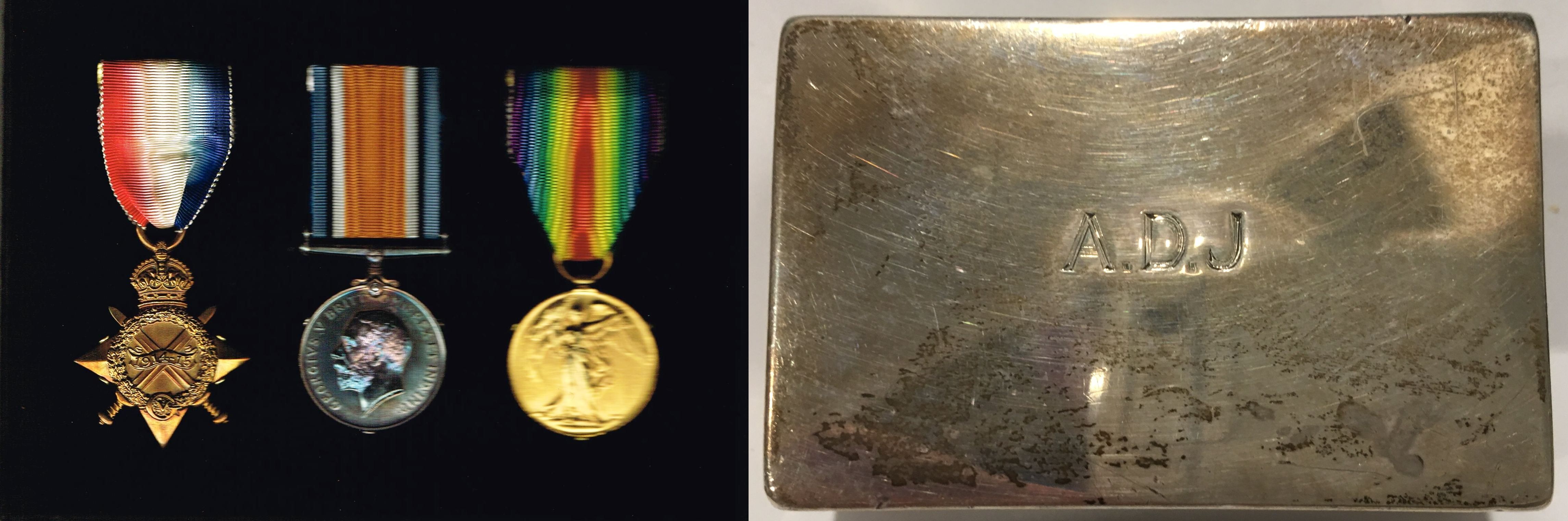 7. Arthur Dudley Julius: Service Medals, WWI. Arthurs WWI service medals and silver cigar case a wedding present from the Colonel and Officers of 11th Battalion Essex Regiment. .