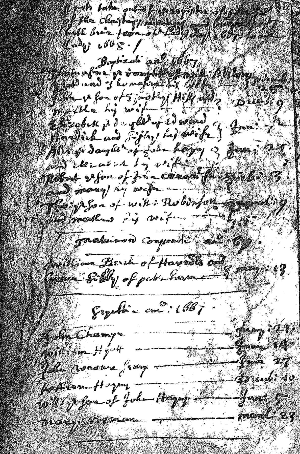 Thomasine married Abraham HANSON [6396] [MRIN: 2144], son of James HANSON [24964] and Unknown, on 19 Apr 1691 in St Michael Crooked Lane LND. (Abraham HANSON [6396] was born about 1665 in England. and died before 1717.) |
