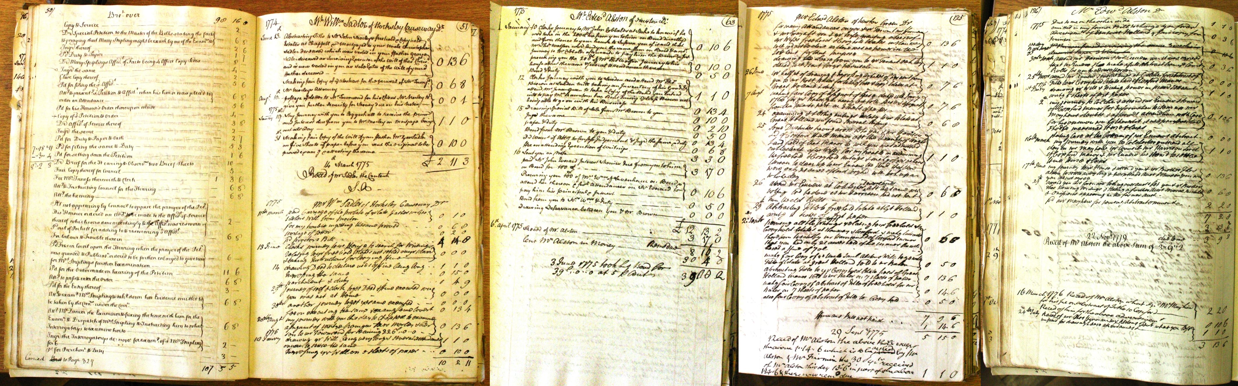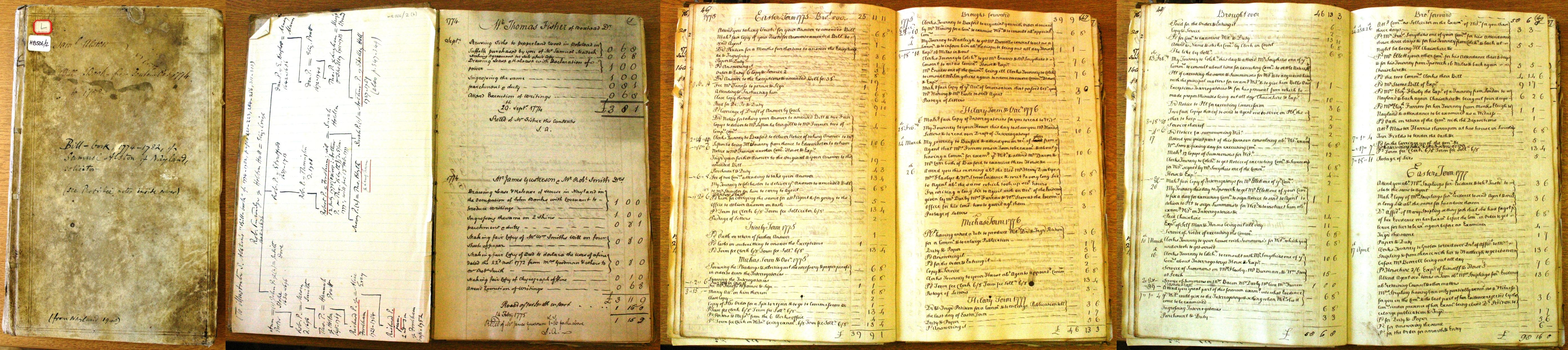8. Alston Law Practice: Bill Book Extracts, 1774-1777, Nayland Suffolk. Details of bills rendered to customers of the practice, several of them Alston family