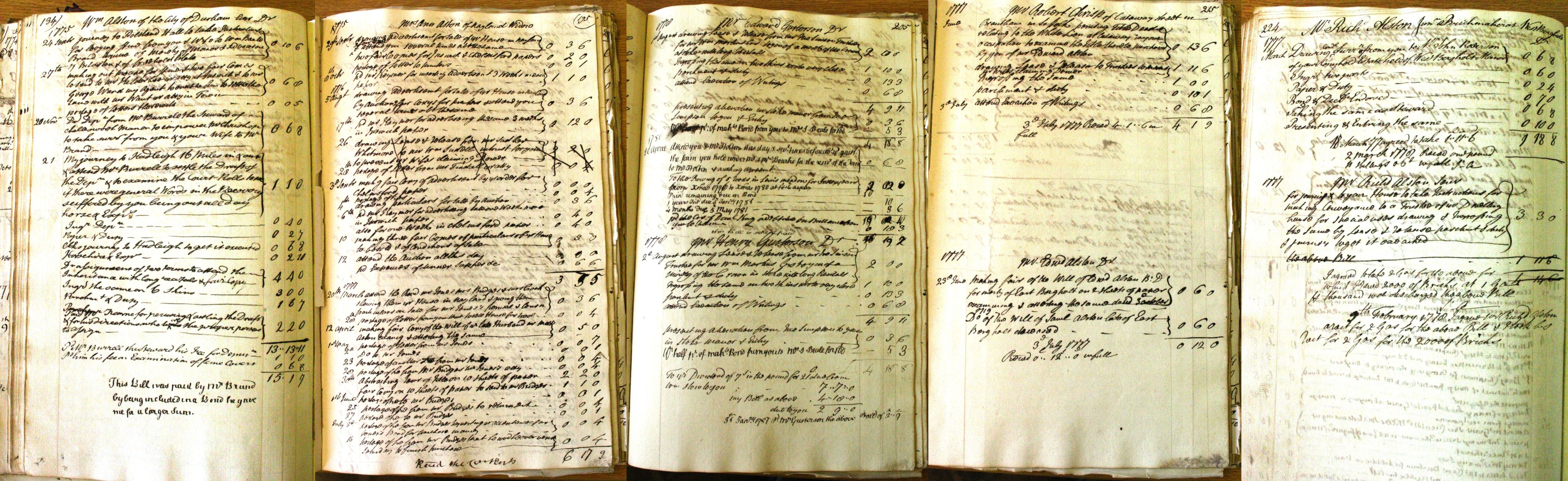 10. Alston Law Practice: Bill Book Extracts, 1775-1777, Nayland Suffolk. Details of bills rendered to customers of the practice, several of them Alston family