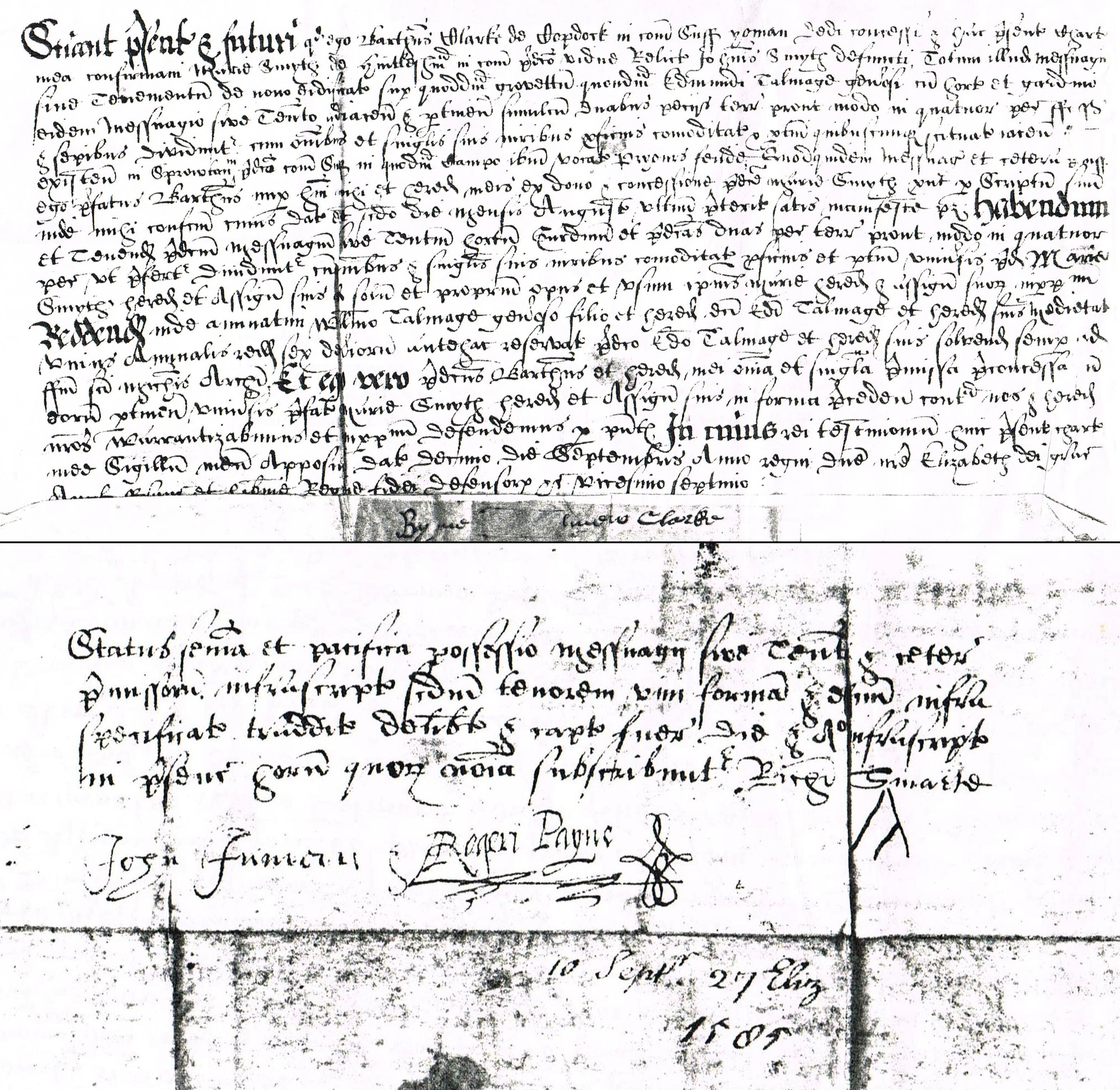 2. Roger Payne: Manuscript, 1585. Payne family were early owners, if not the builders of Alston Court.