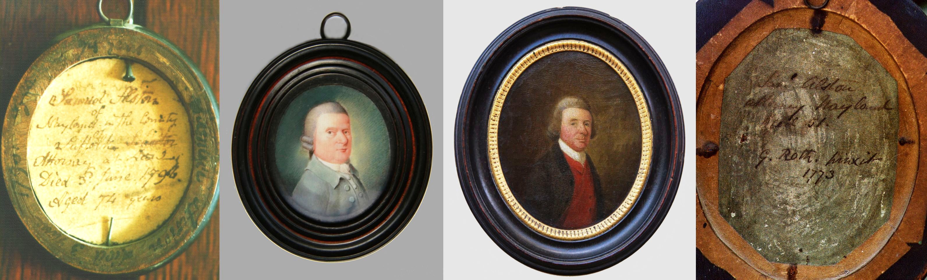 The larger image 100mm x 125mm of George as an older man ? with a less formal wig and dress. Endorsed "Saml Alston Attorney Nayland aet 51 G Roth1 pinxit 1773" In possession of The Kingscandlesticks Trust 2022.