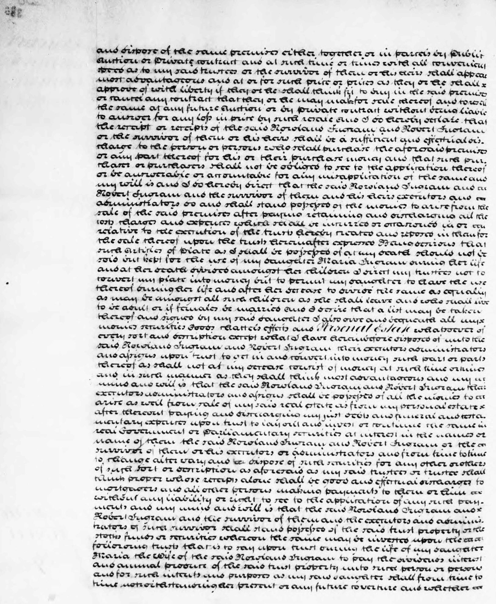 Will of Catherine Alston 27 November 1851 Proved 9 June 1852 This is the last will and testament of me Catherine Alston late of Leicester and now of Giggleswick in the County of York widow I give and devise all my Messuages lands tenements and real estate whatsoever and wheresoever and of every nature and kind unto and to the use of the Reverent Rowland Ingram of Giggleswick aforesaid Clerk and the Reverent Robert Ingram of Chatburn near Clitheroe in the County of Lancaster Clerk and their heirs upon trust to sell and dispose of the same premises either together or in parcels by public auction or private contract and at such time or times with all convenient speed as to my said trustees or the survivor of them or his heirs shall appear most advantageous and at or for such price or prices as they or he shall approve of with liberty if they or he shall think fit to buy in the said premises or . . . . . any contract that they or he may make for sale thereof and to . . . . . the same at any future auction or by private contract without being liable to answer for any loss in price by such resale and I do hereby declare that the receipt or receipts of the said Rowland Ingram and Robert Ingram or the survivor of them or his heirs shall be a sufficient and effectual discharge to the person or persons who shall purchase the aforesaid premises or any part thereof for his or their purchase money and that such purchaser or purchasers shall not be obliged to see to the application thereof or be answerable or accountable for any misapplication of the same and my will is and I so hereby direct that the said Rowland Ingram and Robert Ingram and the survivors of them and his heirs executors and administrators do and shall stand possessed of the monies to arise from the sale of the said premises after paying retaining and discharging all the costs charges and expenses which shall be incurred or occasioned in or relative to the execution of the trust hereby created and deposed in them for the sale thereof upon the trusts hereinafter expressed being desirous that such articles of plate as I shall be possessed of at my decease should not be sold but kept for the use of my daughter Maria Ingram during her life and at her death devised amongst her children I direct my trustees not to convert my plate into money but to permit my daughter to have the use thereof during her life and after her decease to divide the same as equally as may be amongst all such children as she shall leave and who shall live to be adult or if females be married and I desire that a list may be taken thereof and signed by my said daughter I also devise and bequeath all my monies securities goods chattels effects and personal estate whatsoever of every sort and description except what I have hereinbefore disposed of unto the said Rowland Ingram and Robert Ingram their executors and administrators and assigns upon trust to get in and convert into money such part or parts thereof as shall not at my decease consist of money at such time or times and in such manner as they shall think most advantageous and my mind and will is that the said Rowland Ingram and Robert Ingram their executors and administrators and assigns shall be possessed of all the monies to arise as well from sale of my said real estate as from my personal estate after their out paying and discharging my just debts and funeral and testamentary expenses upon trust to layout and invest or continue the same in real Government or Parliamentary securities at interest in the names or name of them the said Rowland Ingram and Robert Ingram or the survivor of them or his executors or administrators and from time to time to change alter very and dispose of such securities for any other or others of such sort or description as aforesaid as my said trustees or trustee shall think proper whose receipts alone shall be good and effectual discharge as to mortgages and all other persons making payments to them or him without any liability or right to see to the application of any such payments and my mind and will is that the said Rowland Ingram and Robert Ingram and the survivors of them and the executors and administrators of their survivors shall stand possessed of the said trust property on the . . . . . funds or securities whereon the same may be invested upon the following trusts that is to say upon trust during the life of my daughter Maria the wife of the said Rowland Ingram to pay the dividends interest and annual produce of the said trust property unto these person or persons and for such interests and purposes as my said daughter shall from time to time notwithstanding her present or any future couverture and whatever covert or sole by any writing or writings under her hand direct or appoint not so as to deprive herself of the intended and benefit of the said . . . . . by sale or mortgage or any other mode of anticipation and as and when such direction or appointment shall be given or in force in trust to pay the same interest or annual produce into the proper hands of my said daughter for her sole and separate use so that the same may not be in any manner subject to the control disposition debts or engagements of her present or any future husband but be at her own sole and absolute and uncontrolled disposal and I hereby declare that the receipt or receipts of my said daughter whether covert or sole or of such person or persons as she shall appoint to receive the same shall at all times be good and effectual discharge as for . . . . . interest and produce and from and after the decease of my said daughter in trust to pay the said principal monies unto and among all and every the children of my said daughter born or to be born and whether by her present or any future husband in equal share and proportions if more than one and if there shall be but one such child then unto such only child to be vested interest in them respectively at the times following that is to say in a son or son