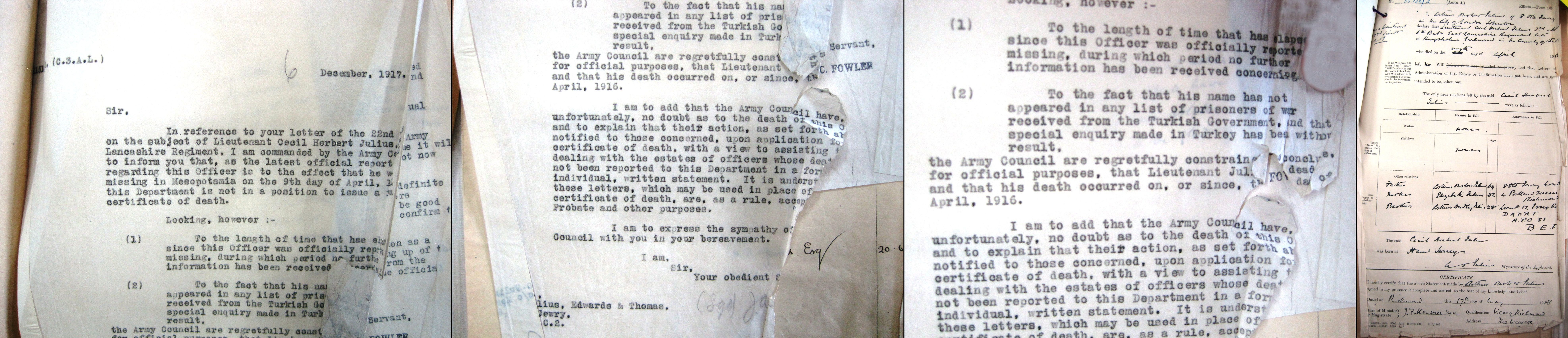 I should feel greatly obliged, if you could relieve my mind by letting me know what has happened to my son, or if it is not the business of your department to notify casualties, will you be so very kind as to pass this letter on to the right quarter that they may communicate with me as soon as possible.