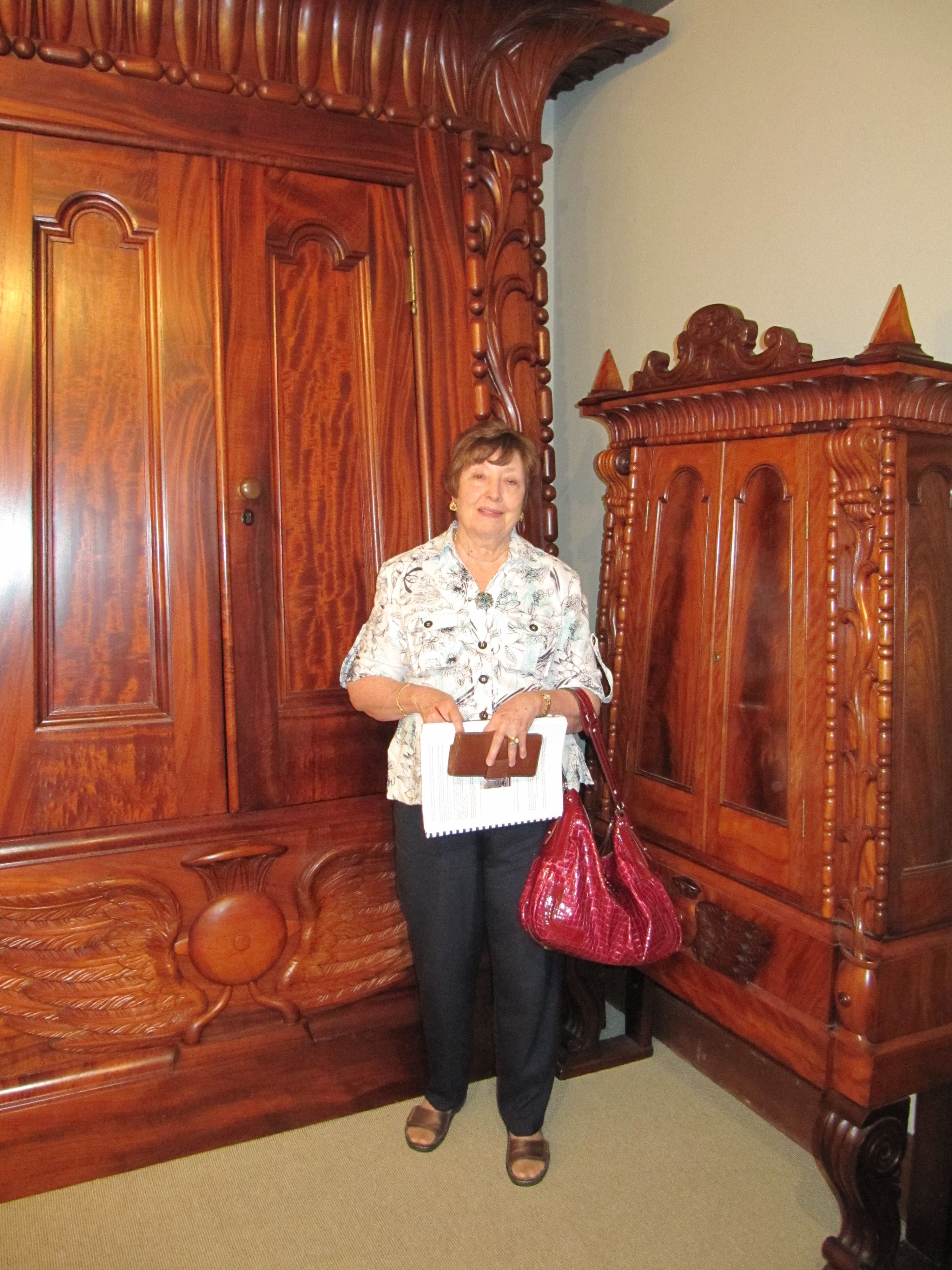 2. Barnard Phillips: Carving of an Ark, Cir 1835, Sydney Australia. This is a picture of Carmen O'Brien standing in front of an Ark of the Covenant1 in the Great Synagogue in Sydney. This Ark (the smaller one) is said to have been built by her Gt Gt Grandfather Barnard Phillips soon after he arrived in Australia. It is mentioned in "A History of the Big Shule" by Raymond Apple "The smaller, earlier Ark is made of cedar, mahogany and rosewood. It was thought to have been designed in 1835 by a stage carpenter working for Barnett Levey, the Father of Australian Theatre, although it has been suggested more recently that it is actually a maker's model for the York Street Ark2."