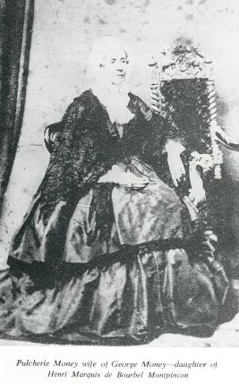 Pulcherie married George Osborne MONEY [15559] [MRIN: 5529], son of William MONEY of Homme Hse Much Marcle HEF [15566] and Mary WEBSTER [15567], on 21 Jan 1817 in St George Hanover Sq. (George Osborne MONEY [15559] was born on 6 Dec 1777, baptised on 16 Dec 1777 in St Shields DUR and died on 20 Aug 1851 in Torquay.) |