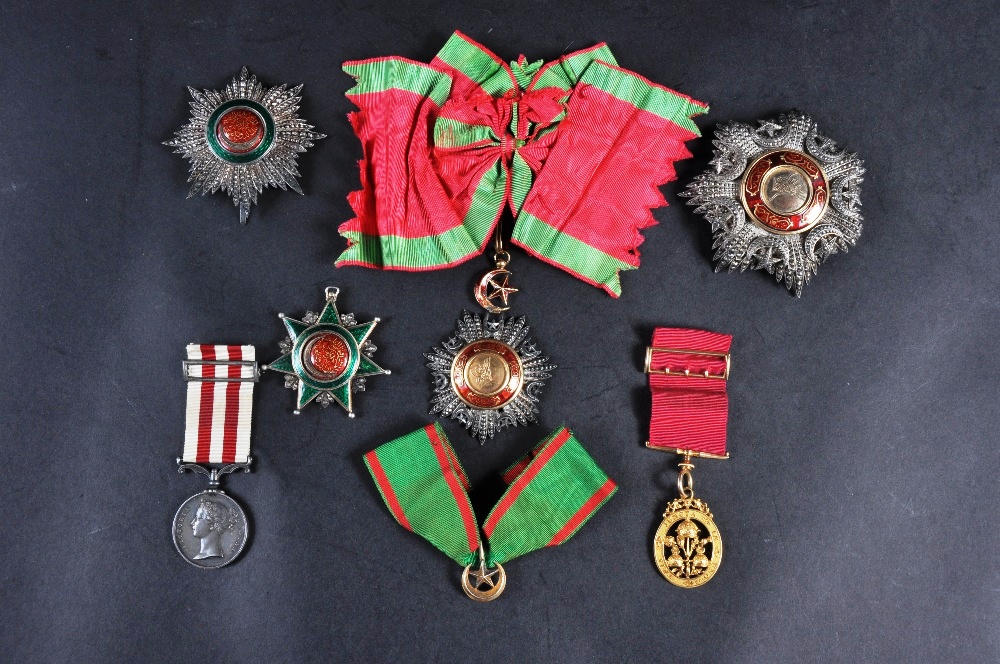THE MEDALS OF SIR ALONZO MONEY comprising THE MOST HONOURABLE ORDER OF THE BATH (BREAST BADGE), G. CB SASH BADGE (CIVIL), INDIAN MUTINY MEDAL, CIVIL SERVICE with ribbon, TURKISH ORDER OF OSMANIEH STAR AND NECK BADGE, MEDIJIELI STAR & NECK BADGE.