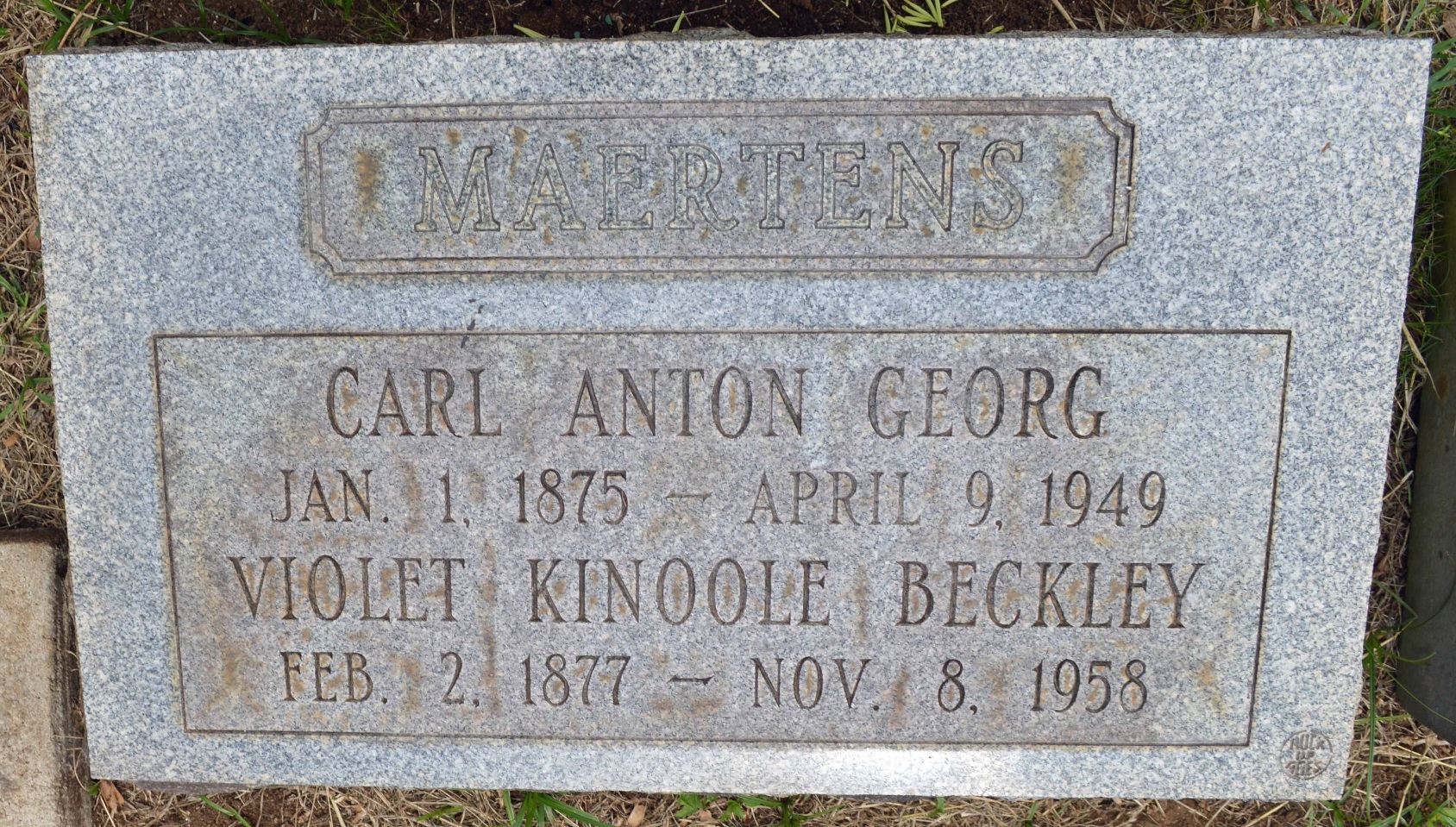 Unknown Newspaper, April 1949 CARL MAERTENS DIES; WAS 74 Carl A. G. Maertens, 74, 1702 Makiki St., widely known resident of Honolulu, died in The Queen's Hospital at 1:30 o'clock Saturday *(9 Apr) afternoon following a prolonged illness. Funeral arrangements will be announced later. Borthwick's mortuary is in charge of arrangements. He is survived by the widow, Mrs. Violet Beckley Maertens; three sons, William, Kamehameha and Frederick; four daughters, Mrs. Clara Zeisenhenne of Long Beach, Calif.; Mrs. Maryjane Burner and Mrs. Catherine Giltner of Honolulu, and Mrs. Julia Bradshaw, living in Japan. Also surviving are four brothers, W. L. Maertens of Honolulu, Joseph Maertens of Kamuela, Hawaii; and Herman and Frederick Maertens, living in Germany; a sister, Mrs. Anna Estner, living in Germany; and five granddaughters and one grandson. Maertens was born in Honolulu on Jan. 1, 1875, and was educated at Punahou school, San Mateo College, Calif., and at the University of Jana in Germany. He was the son of William Maertens and Emma (Booth) Maertens, and his father was at one time co-owner of Hoffschlaeger & Co. As a young man he was employed at Hoffschlaeger & Co. for many years, and later at The Von Hamm-Young Co. He retired about 10 years ago. Additional Comments: *Note indicates this was April 9, 1949. Ref: J. Orr http://files.usgwarchives.net/hi/honolulu/obits/maertens230gob.txt
