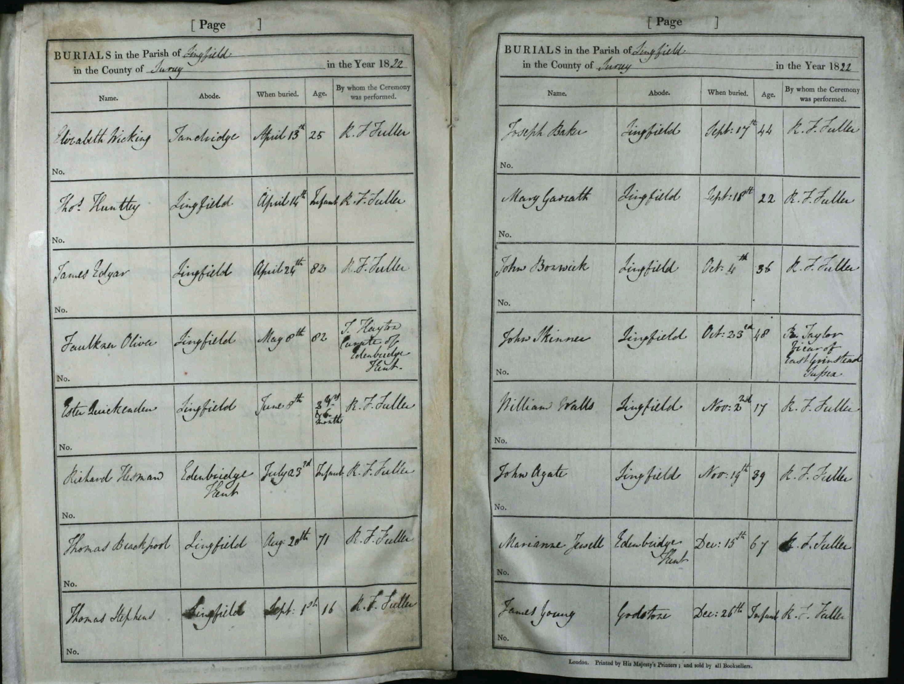- Died: 24 Apr 1822, Lingfield SRY aged about 82