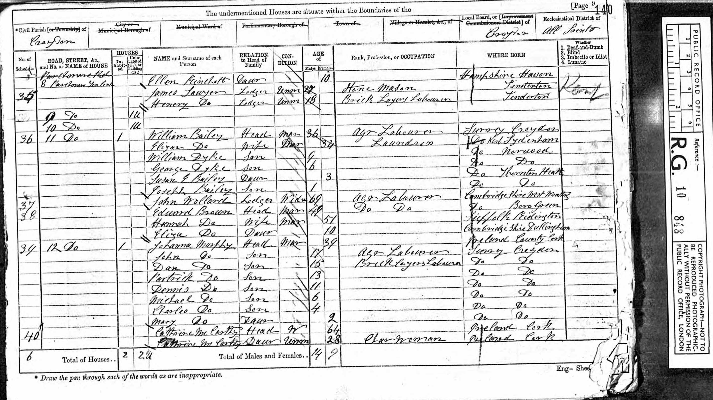 1. Census: England, 2 Apr 1871, District 42 Croydon SRY. William Dyke is recorded as a son (of William Bailey?) aged 9 born Norwood SRY William married Sarah SKINNER [21400] [MRIN: 7510], daughter of Peter SKINNER [31186] and Fanny DONOVAN [31189], on 8 Feb 1885 in St Paul Thornton Heath SRY. (Sarah SKINNER [21400] was born on 27 Mar 1864 in Croydon SRY and died in 1946 in Croydon SRY.) |