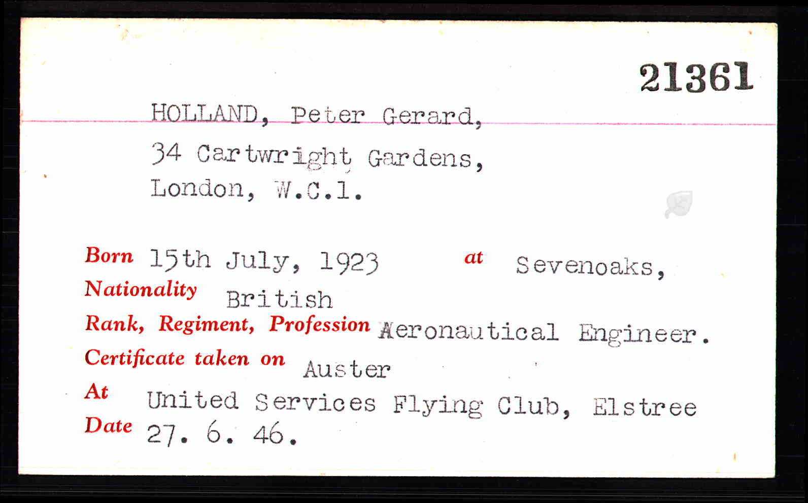 Peter Gerard Holland travelled with his mother on the Darro from Lisbon to Liverpool arriving 13 August 1932. He is described as a scholar aged 9.