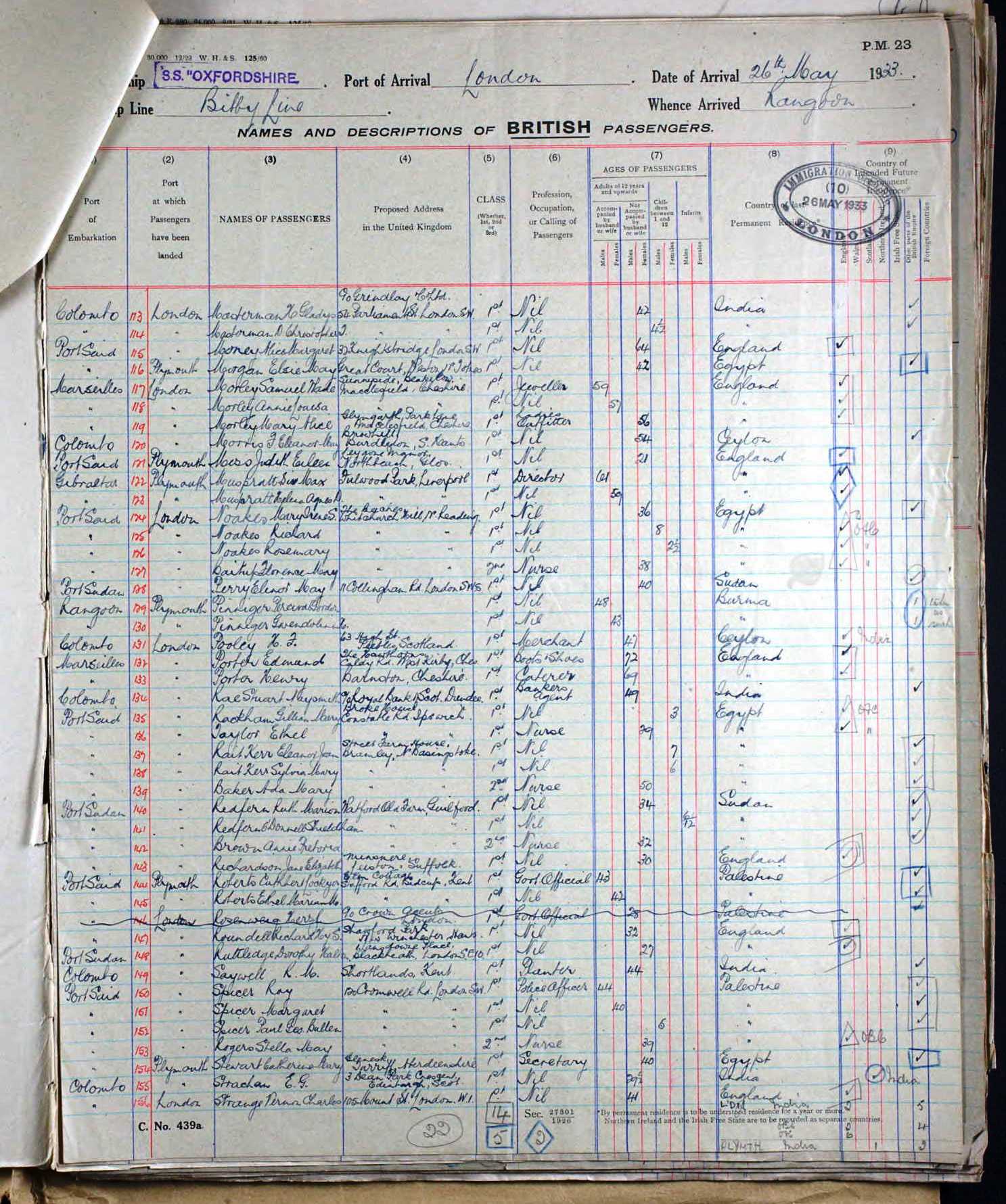 Roy married Margaret Frances Ina MONEY [15604] [MRIN: 8668], daughter of Edgar George MONEY [14591] and Alice Margaret EDMONSTONE [15601]. (Margaret Frances Ina MONEY [15604] was born on 8 Sep 1892 in Ceylon Martin Minnestoa USA, baptised on 23 Aug 1893 in St Marks Surbiton SRY and died on 17 Aug 1953 in Bayswater MDX.) |