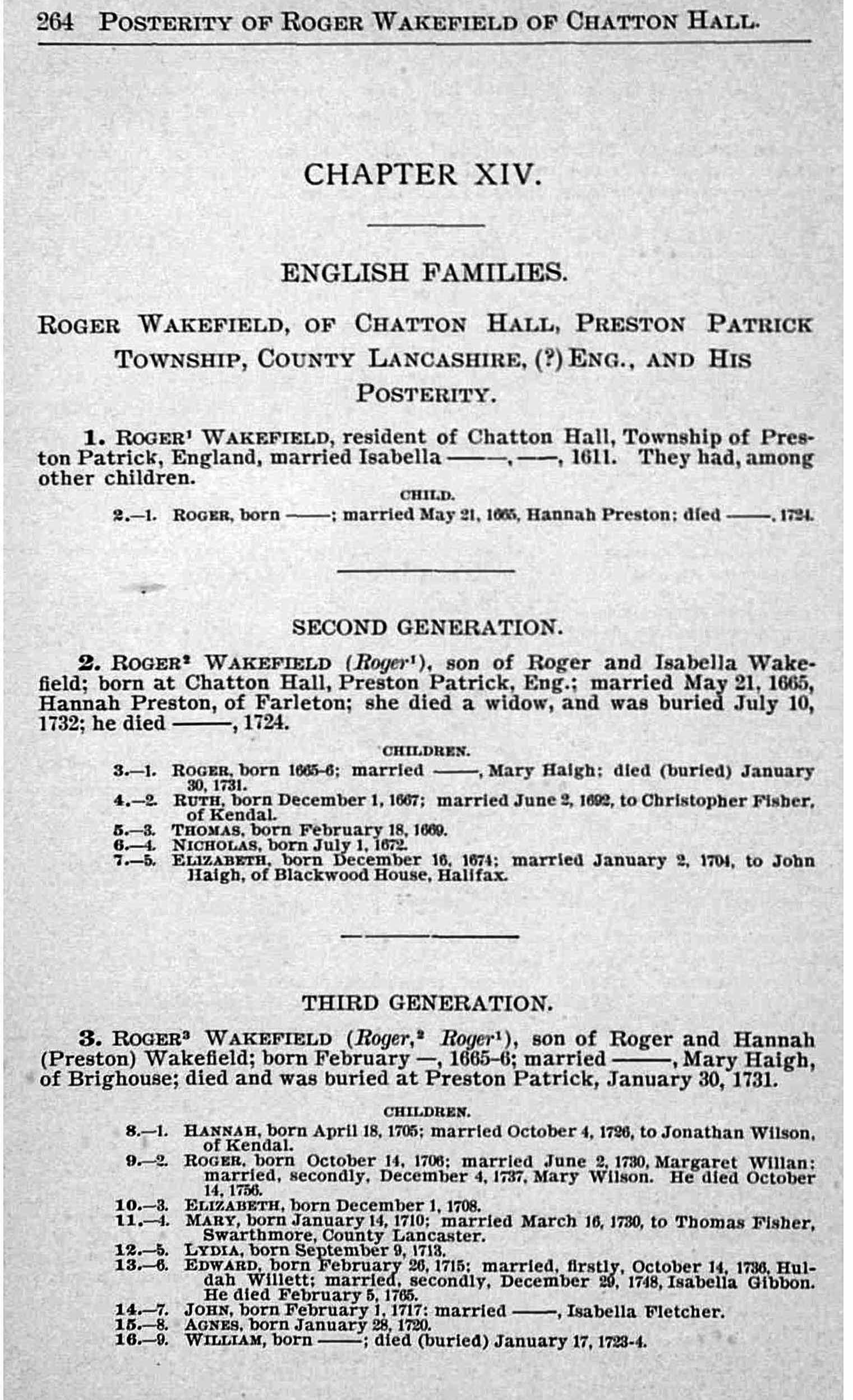 Isabella spouse unknown Roger WAKEFIELD of Challon Hall [31322] [MRIN: 4080] circa 1611. (Roger WAKEFIELD of Challon Hall [31322] was born in 1572 in Challon Hall Preston Patrick WES England and died in 1592 in Wrockwardine SAL.) |