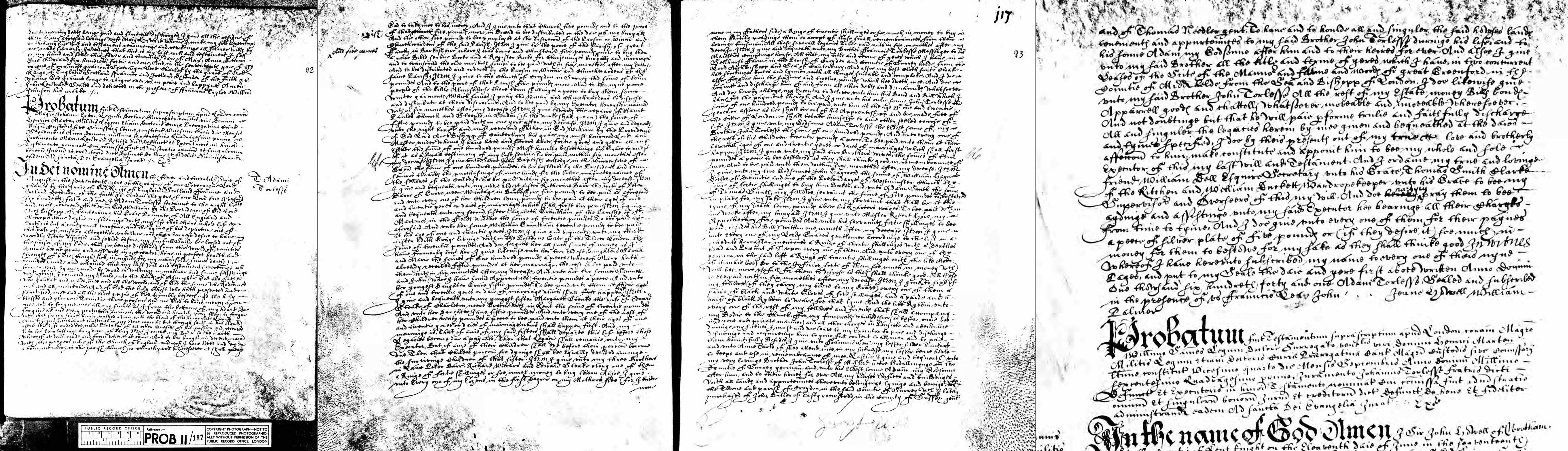 2. Adam Torlesse: Will, 1641.