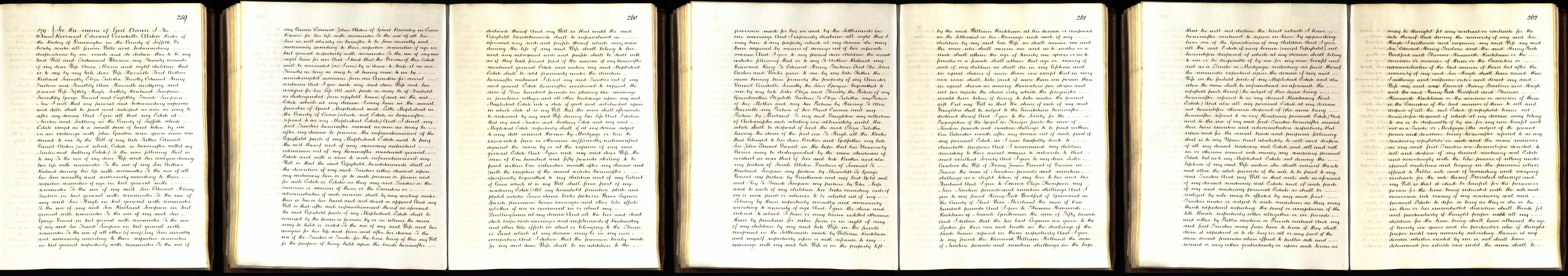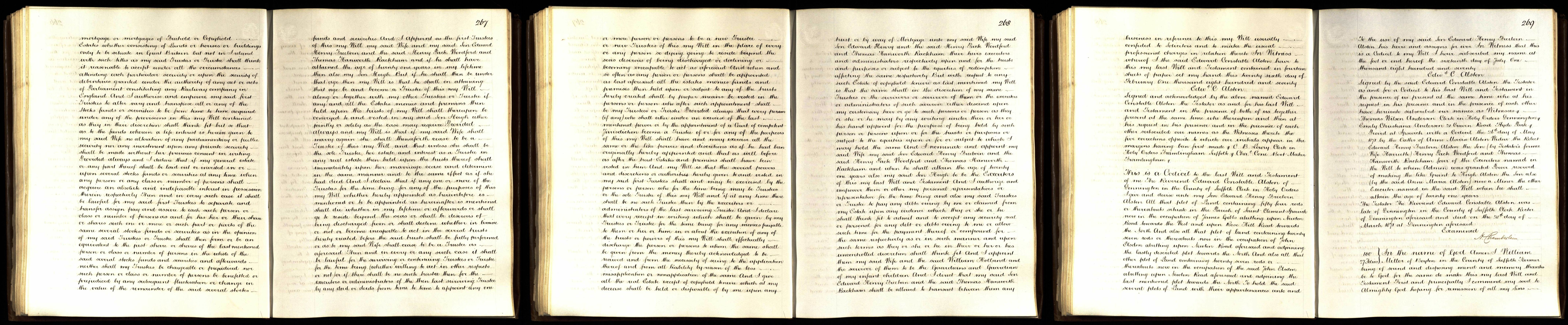 Will of Rev Edward Constable Alston. 26 February 1870 In the Name of God Amen I the Rev Edward Constable Alston Rector of the Rectory of Dennington in the County of Suffolk do hereby revoke all former Wills and Testamentary dispositions by me made and do declare this to be my last will and testament Whereas my family consists of my dear wife Anne Maria and 8 children that is to say by my late dear wife Harriet first Arthur Richard secondly Eliza Tabatha thirdly Edward Henry Freeborn and fourthly Alice Harriet and by my said present wife fifthly Hugh sixthly Rowland Simpson seventhly George Donnet and eighthly Frank Simpson Now I Will that my funeral and testamentary expenses and debts shall be paid and satisfied as soon as may be after my decease And I Give all that my estate at Newton and Sudbury in the County of Suffolk which estate except as to a small piece of land taken by me on exchange with John Gurdon some years since was devised to me by the will of my late father Edward Daniel Alston (and which estate is hereinafter called my Newton and Sudbury estate) To the uses following that is to say To the use of my dear wife and her assigns during her life with remainder To the use of my son Arthur Richard during his life with remainder To the use of all his sons severally and successively according to their respective seniorities of age in tail generally with remainder To the use of my said son Edward Henry Freeborn in tail general with remainder to That the use of my said son Hugh in tail general with remainder To the use of my said son Rowland Simpson in tail general with remainder To the use of my said son George Donnet in tail general with remainder To the use of my said son Frank Simpson in tail general with remainder To the use of all other (if any) my sons severally and successively according to their respective seniorities in tail generally respectively with remainder To the use of Page 2 my cousin Edward John Alston of Great Bromley in Essex Brewer for his life with remainder To the use of all his sons as well already as hereinafter to be born severally and successively according to their respective seniority is of age in tail general respectively with remainder To the use of my own right heirs forever And I trust that the devices of this estate will be animated (as I am) by a desire to keep it in our family as long as may be it having come to us by uninterrupted succession from our ancestors for several centuries And I give unto my said dear wife and her assigns for her life All such parts as may be of freehold as distinguished from copyhold tenure of and in the real estate That which at my decease I may have in the several parishes of Great Maplestead and Little Maplestead in the County of Essex (which real estate is hereinafter referred to as my Maplestead estate) And I direct my first trustees hereinafter named as soon as may be after my decease to procure the enfranchisement of the copyhold part of my Maplestead estate and to pay the cost thereof and of any necessary antecedent admission out of my hereinafter mentioned general estate and with a view to such enfranchisement my Will is that the said copyhold hereditments shall at the discretion of my said trustees either descend upon my customary heir or go to such persons or person and for such estate or estates as they my said trustees or the survivors or survivor of them or the executors or administrators of such survivor shall by any writing under their or his or her hand and seal direct or appoint And my will is that after such enfranchisement thereof as aforesaid the said copyhold part of my Maplestead estate shall be conveyed by the person or persons by or in whom the same may be held or vested To the use of my said wife and her assigns for her life and from and after her demise To the use of the trustees or trustee for the time being of this my will for the purpose of being held upon the trusts hereinafter Page 3 declared thereof And my Will Is that until the said copyhold hereditments shall be enfranchised as aforesaid any rents and profits thereof which may arise during the life of the my said wife shall belong to her and any subsequent rents and profits shall be dealt with as if they had formed part of the income of my hereinafter mentioned general estate And unless my said Maplestead estate shall be sold previously under the direction hereinafter contained I direct my said trustees out of my said general estate hereinafter mentioned to expend the sum of £300 in placing the Messuages or farmhouse cottages and all other buildings upon my said Maplestead estate into a state of good and substantial repair in which state it is my will that the same shall afterwards be continued by my said wife during her life And I Declare that my said Newton and Sudbury estate and my said Maplestead estate respectively shall if that my decease subject to any debt secured thereon by mortgage or lien be exonerated from or otherwise sufficiently indemnified against the same by or at the expense of my said general estate And I Give unto my said dear wife the sum of £150 Stirling to be paid within one calendar month after my decease and (with the exception of the several articles hereinafter specifically bequeathed to my children and of my Cabinet of Coins which it is my will shall form part of my residuary estate) All my household furniture plate plated articles linen china books pictures wines liquors spirits provisions horses carriages and other like effects whether of use or ornamental in or about my dwellinghouse at my decease And all the live and dead stock crops carts carriages and implements of husbandry and other like effects in about all belonging to the farm or land which at my decease may be in my own occupation And I declare that the provision here by made for my said dear Wife shall be in addition to the Page 4 provision made for her in and by the Settlements on our marriage And I expressly disclaim all right that I may ha