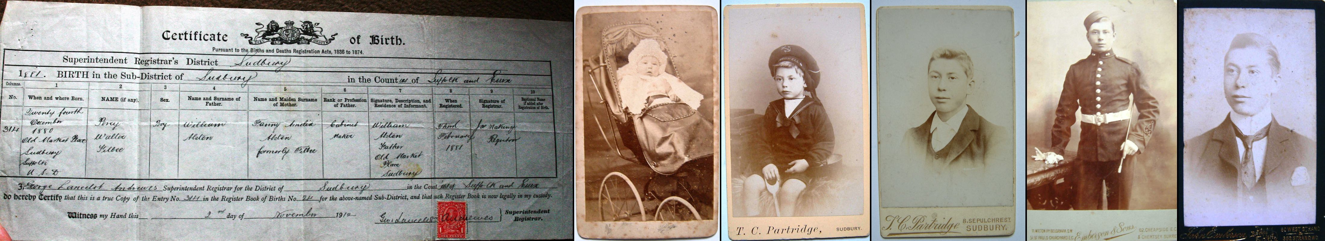2. Census: England, 5 Apr 1891, Sudbury SFK. Percy is recorded as a son aged 10 a scholar born Sudbury.