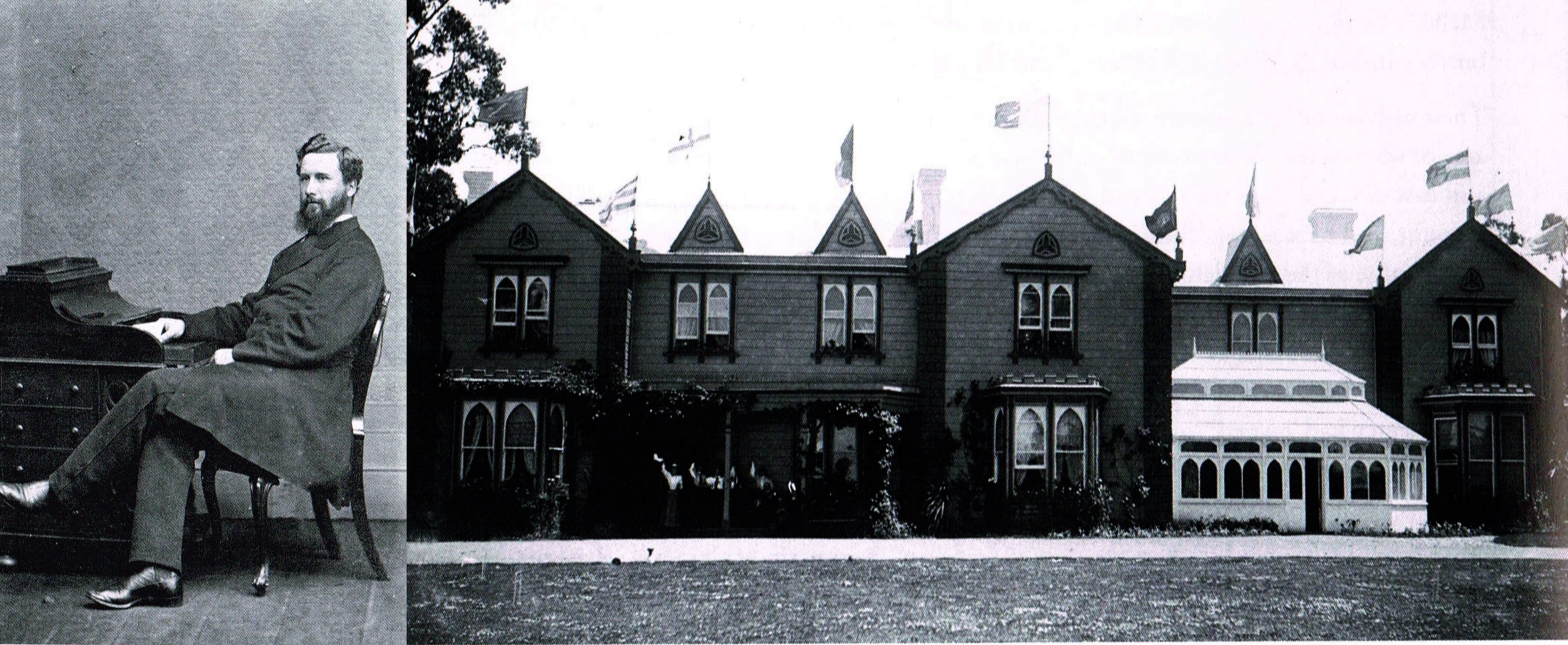 Edward had a liberal education and his family are said to have hoped he would make the church his life, however he chose a career as an agriculturist. In 1864 at the age of 24 he set sail for Australia aboard the Duncan Dunbar, there he bought three horses, engaged an aboriginal guide and headed inland finally arriving at Toowoomba Queensland. Here he managed a large station for the Taylor family and invested in land, which he then sold at a profit. Returning to Sydney in the same year he took ship to New Zealand, whilst in hospital in Ashburton, Mid. Canterbury recovering from a fall from a horse he heard of good land becoming available in South Canterbury. As a result he took up a partnership with David Innes in Pareora Estate 10 miles from Timaru. They each worked a separate part of the property, Edward renaming his Holme Station although the name dated from Innes in June 1862. By 1879 Edward had 30,000 acres of leasehold land, 37,000 acres of freehold and 41,000 sheep. The book "The Early Canterbury Runs" page 189 put the figures 52,000 acres of freehold, 14,000 of leasehold carrying 60,000 sheep. He was a progressive and successful farmer, and Holme Station was one of the finest properties in Canterbury. He returned to England in 1867 where he married Sarah, a Lancashire woman.
