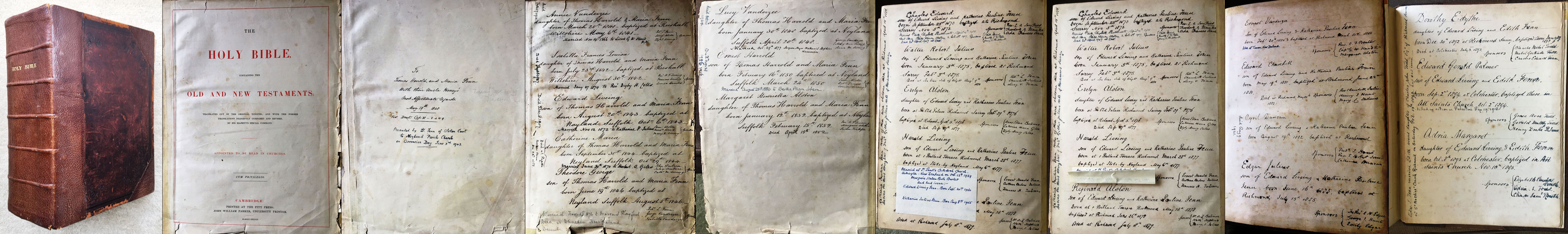A large King James Bible was given to Thomas & Maria "with their Uncle Henry's most affectionate regards 19 May 1840" presumably as a wedding present. Their children's details are entered into it. Uncle Henry may be Rev Thomas Henry Liveing b.1805. This bible was given to Nayland Parish Church by Dr Charles Fenn in 1943, where it was used until it was returned to the family many years later. Now in the possession of E L Fenn 2000. Ref B/35