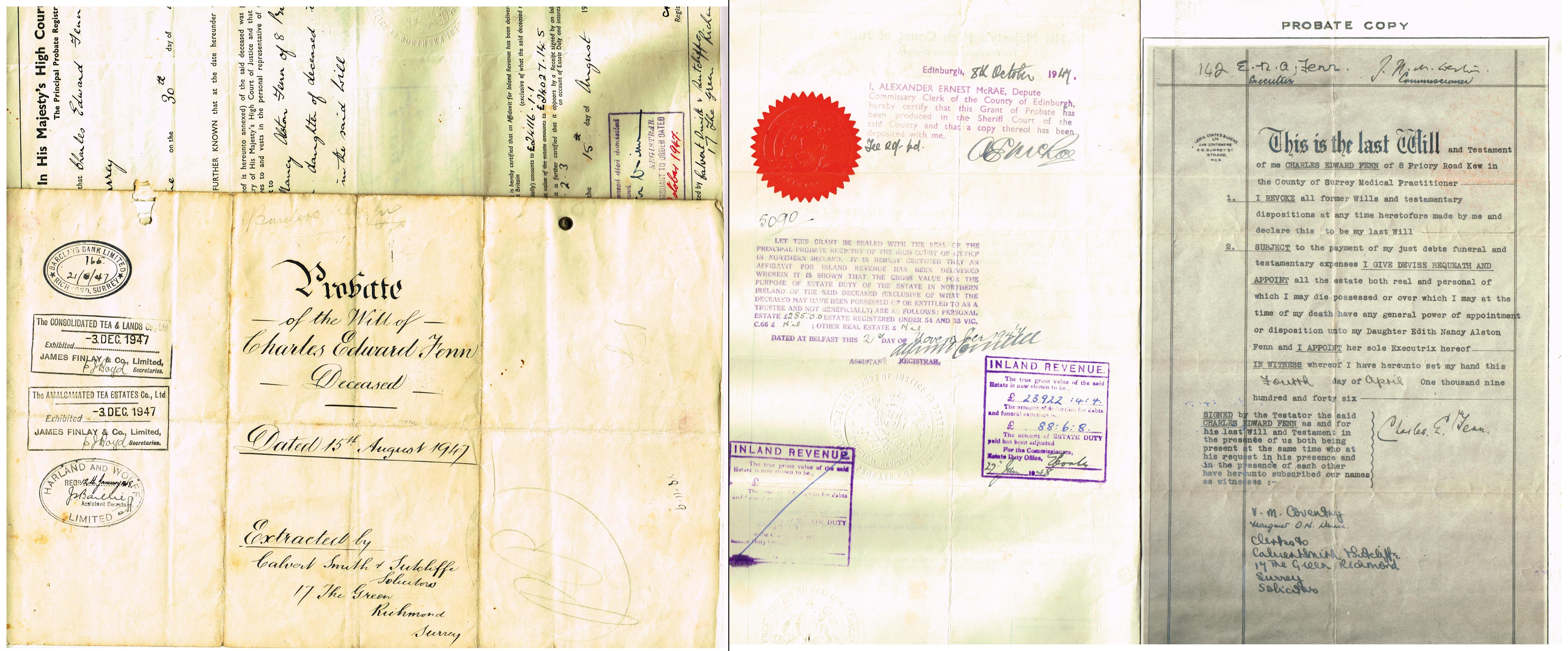 18. Charles Edward Fenn: Will, 4 Apr 1946, Kew. Charlies Will dated 4 Apr 1946, was proved 15 Aug 1947 for L24,000 Leaves his entire estate to his daughter.